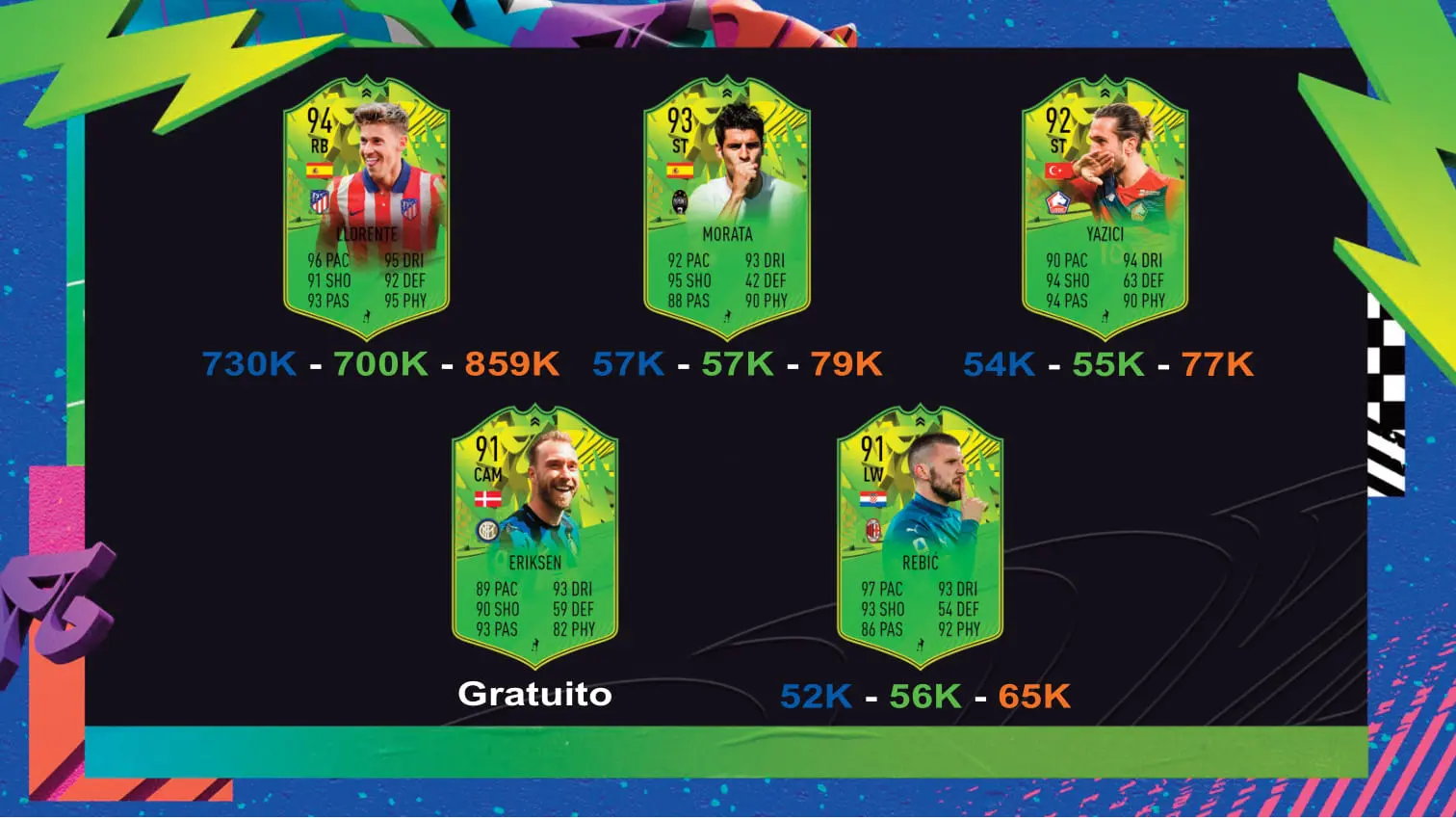 Todos los precios son marcados por FUTBIN y las cartas son creadas en FUTHEAD.