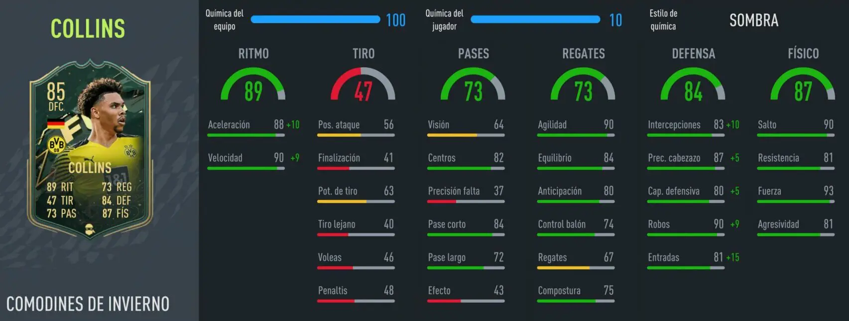 Su ritmo es impresionante para un central, pero eso no significa que Collins Winter Wildcards sea el DFC perfecto para Ultimate Team. También tiene carencias y la principal es su 80 de inteligencia, un atributo bajo para la época actual. Es una estadística importante este año y la notamos en el campo, al igual que sucede con su mejorable 83 de intercepción. Mientras que el 80 en reacción hace que no sea demasiado hábil girando sobre si mismo, algo que puede molestar cuando el rival trata de driblarnos.