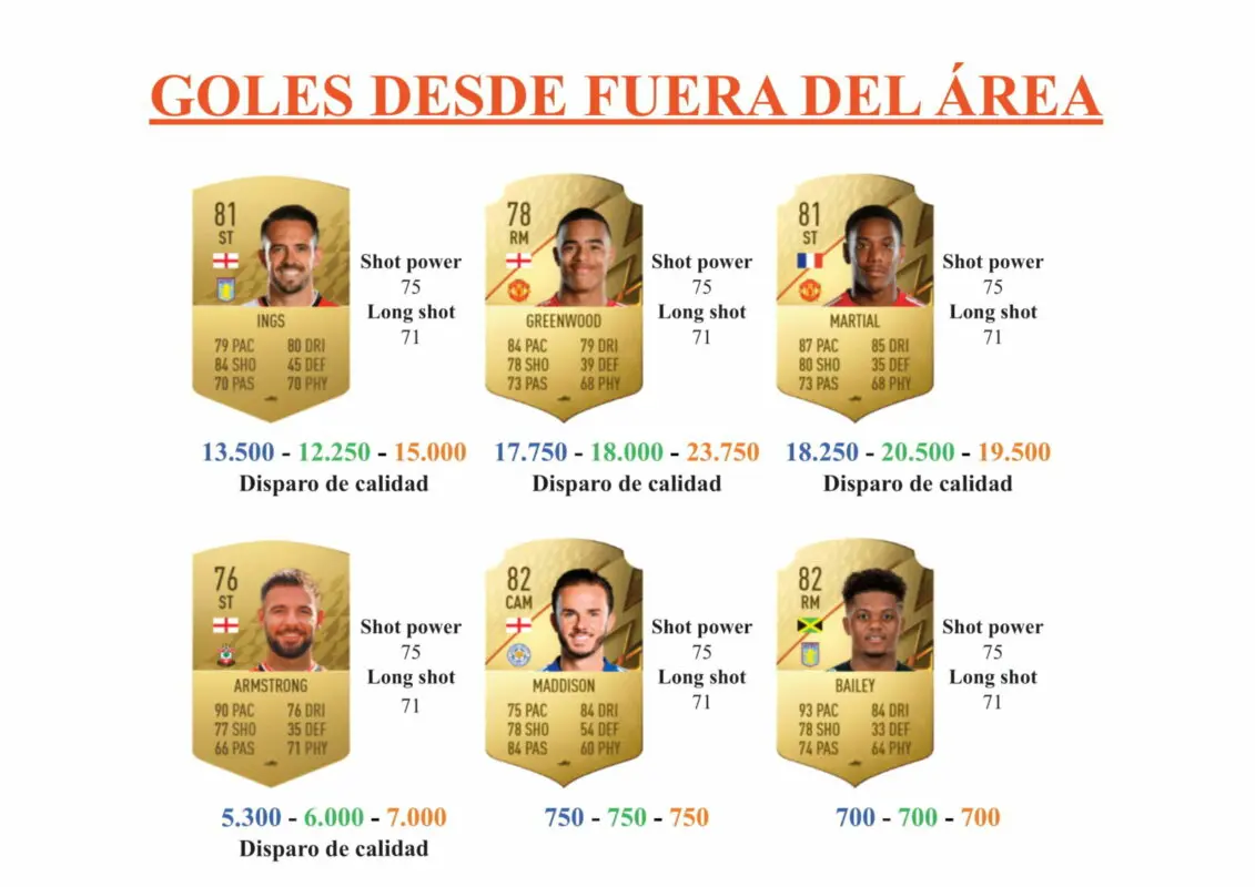 El objetivo de marcar desde fuera del área será complicado, ya que en la Premier League no contamos con ítems de poca media que sean especialistas en ese tipo de lanzamientos. Aquí podéis ver una lista con algunos más o menos correctos, pero de todas formas será difícil. Necesitaréis paciencia para lograrlo. No mostramos jugadores útiles para el reto de los centros porque los mejores en esa faceta tienen una valoración general demasiado alta, o sufren alguna carencia grave que arruina su rendimiento durante el partido. Así que es más aconsejable usar cartas que simplemente funcionen bien de forma general. Y al final de la guía tenéis una plantilla muy interesante para estos desafíos, que cumple con los requisitos y su coste no es elevado.