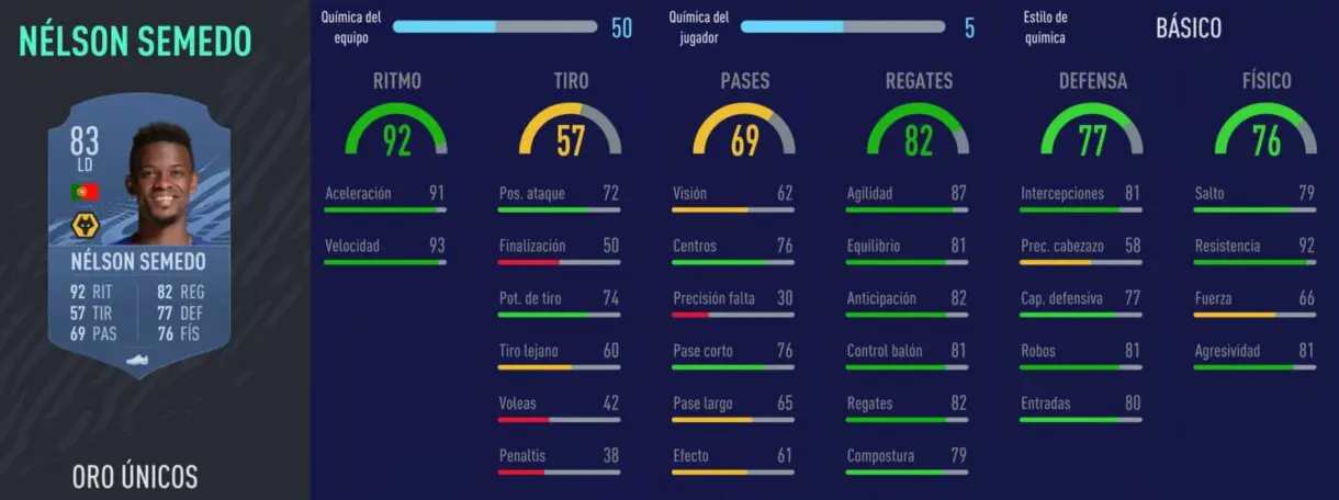 El popular lateral portugués también ha empeorado dos puntos durante FIFA 21. Por su nacionalidad y sus equilibradas estadísticas, es un futbolista bastante utilizado para arrancar las temporadas. Alguien con buen trato de balón pese a sus bajas estadísticas de pase, cuatro estrellas de filigranas y un rendimiento defensivo correcto.