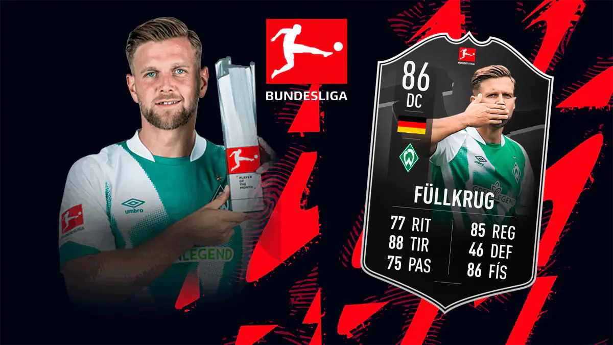 Aunque ayer conocimos a los candidatos de la Serie A para noviembre, aún debían llegar varios Jugadores del Mes de octubre a FIFA 23. Uno de ellos era el de la Bundesliga y, por segunda vez consecutiva, Niclas Füllkrug está disponible como POTM. Vuelve a recibir este galardón, ahora alcanza el 86 de media y su SBC no desaparecerá de Ultimate Team hasta el 17 de diciembre.