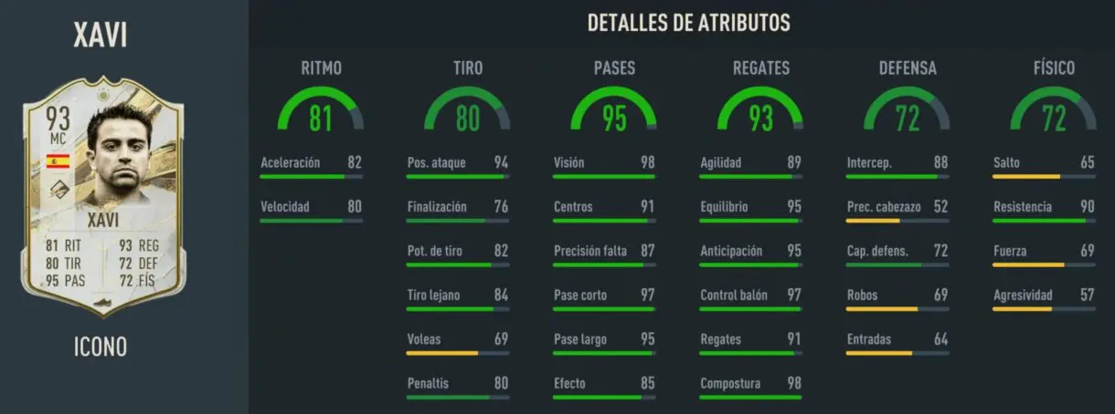 Su ritmo también queda un poco bajo para esta época de Ultimate Team. Y aunque sobre todo destaca por las estadísticas de pase y regate (su 98 en visión está genial), en campo contrario será menos efectivo debido a esas tres estrellas de pierna mala.