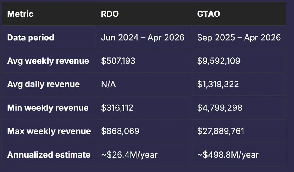 En este apartado podemos ver cuáles son los ingresos medios que generan los modos online de GTA V y Red Dead Redemption 2, tanto diarios como semanales, y hacer una estimación de lo que generan al año.