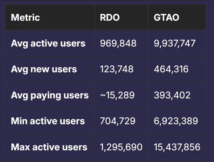 Aquí vemos fácilmente por qué Rockstar prioriza GTA Online por encima de Red Dead Online. Estamos hablando de una diferencia abismal, de más de un millón de dólares, de casi medio millón al año, frente a los 26,4 de Red Dead.