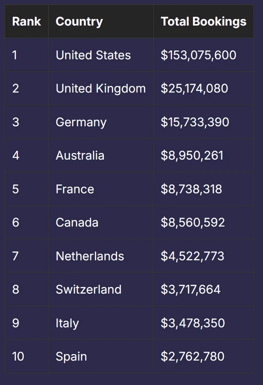 Estos son los ingresos totales (desde el 9 de septiembre de 2025 hasta el 24 de marzo de 2026) de GTA Online por países: