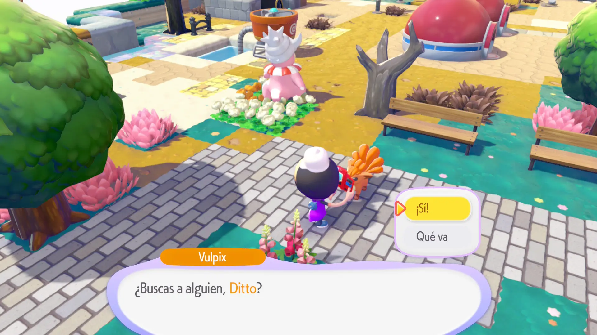 En este momento, tu personaje sacará la Pokédex indicando que busca a alguien y, cuando abras diálogo con cualquier otro Pokémon, este señalará en la dirección del que estés buscando. De esta manera, podrás encontrarlo de forma muy sencilla en un abrir y cerrar de ojos. Por otro lado, también puedes usar un tarro de miel en su hábitat (se recoge en los lechos de flores) para que vuelvan inmediatamente a él.