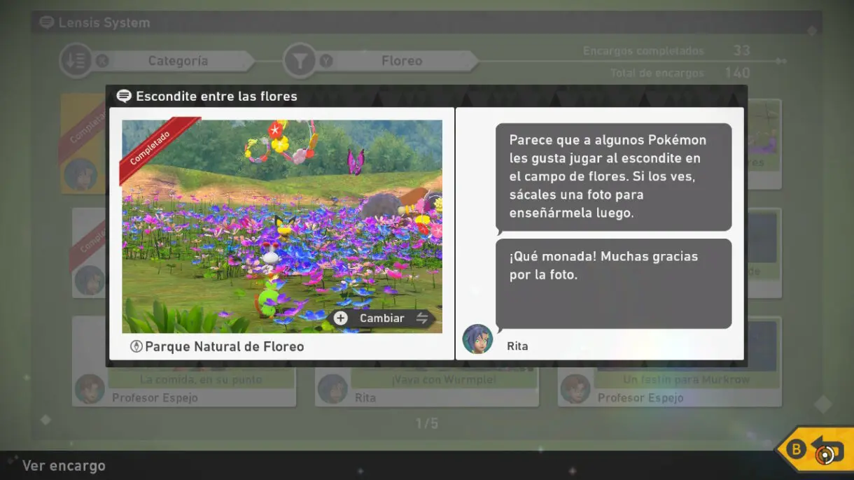 En esta guía de New Pokémon Snap os vamos a contar todos los encargos disponibles en la subregión de Floreo. Los encargos son esa especie de misiones secundarias que los personajes nos mandan y que requieren de que hagamos fotografías muy específicas para completarlas. A continuación os dejamos la lista completa de encargos en Floreo y cómo completarlos.