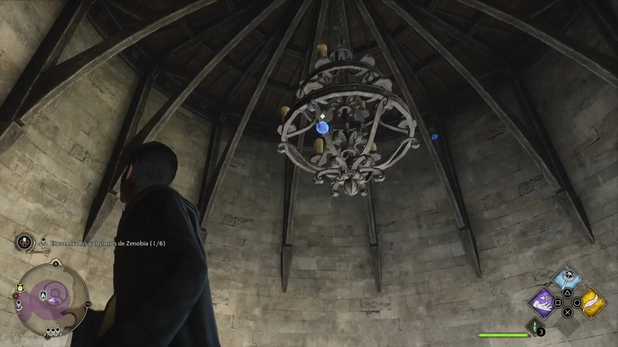 Te pedirá que le busques unos gobstones por lugares elevados de la escuela. Lo bueno es que el mapa te ubicación de los 6 gobstones, aunque solo son aproximaciones, pero son fáciles de ver. Sigue las rutas que te indica el mapa para llegar a las 6 ubicaciones y, cuando llegues, busca una esfera verde brillante en un lugar elevado. Usa Accio para recoger las esferas. Te dejo a continuación las 6 imágenes con los 6 gobstones.