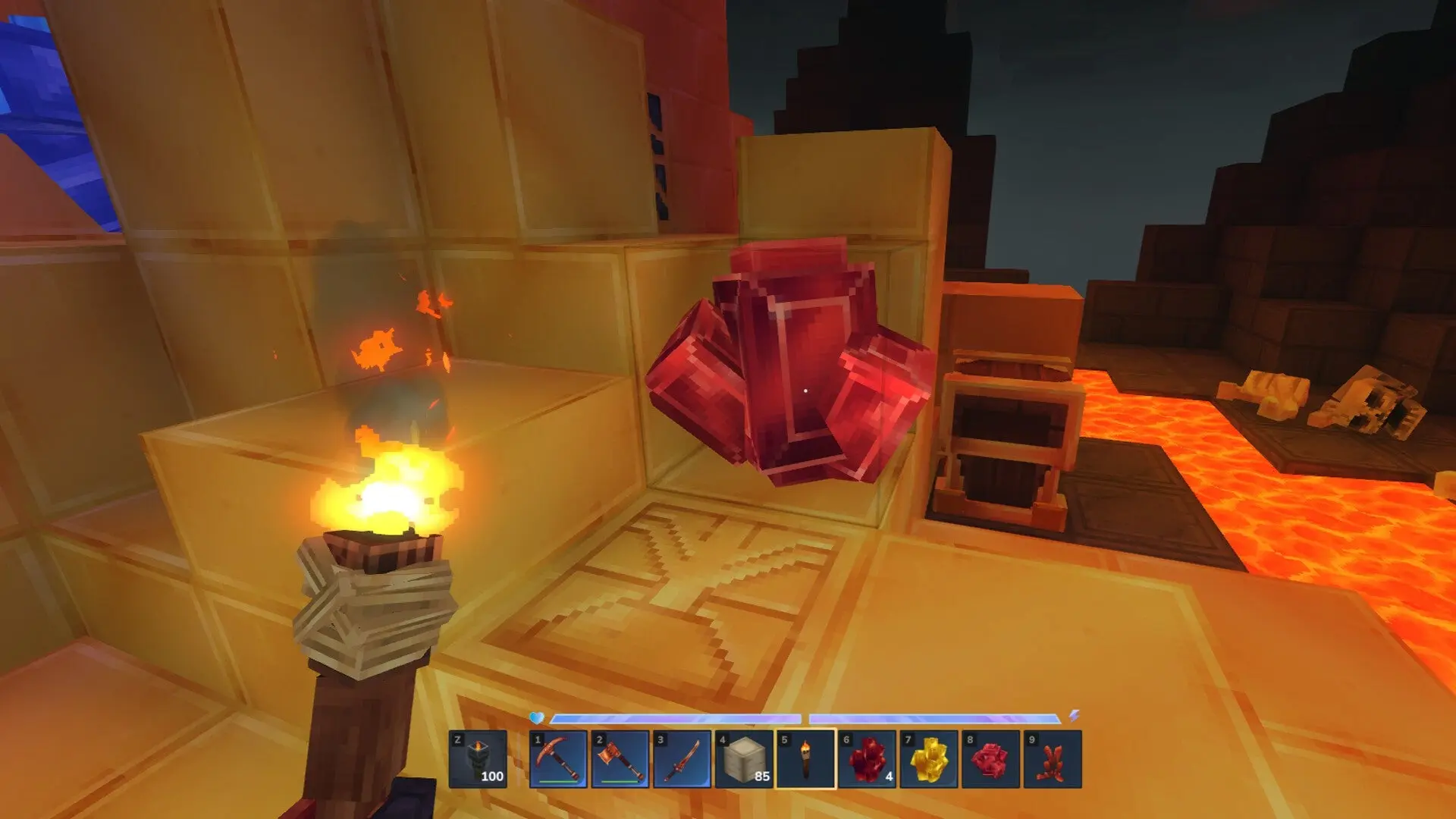 Por suerte, los rubíes se pueden encontrar en una zona concreta del mapa de Hytale, aunque lo cierto es que es bastante complicado llegar hasta ella. La cosa es que esta piedra preciosa cuenta con una alta probabilidad de aparición en el fondo de los cráters que hay en el bioma volcánico. Eso sí, solo spawnean en aquellos que esconden una pila de bloques de oro en su interior.