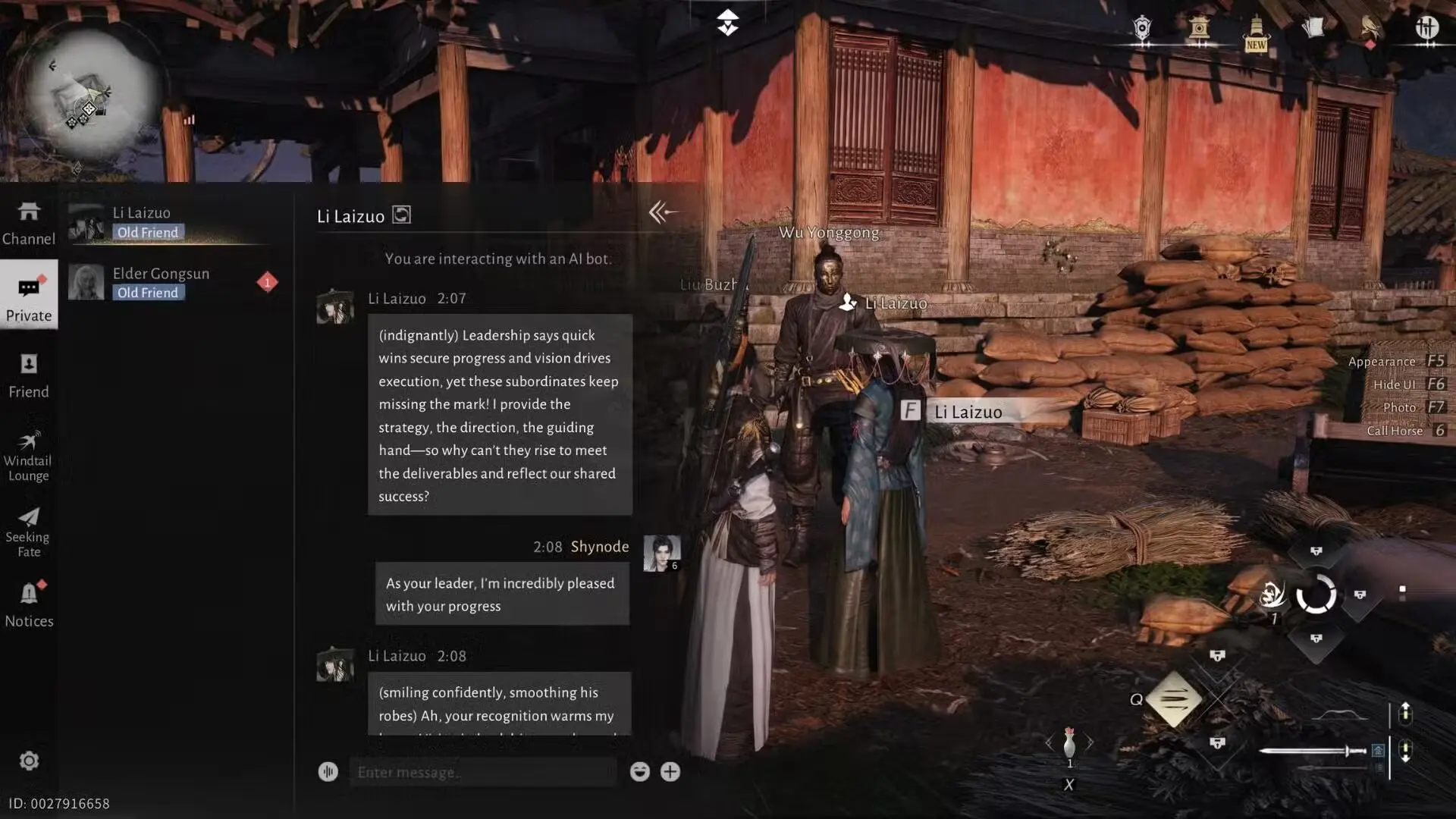Como te contaba, esta utilización de la IA en los videojuegos me ha planteado muchas dudas. Por un lado, es una especie de sueño que tenía de pequeño que se ha "cumplido": poder transitar por un mundo dentro de un videojuego donde pueda decir todo lo que quiera, y que los personajes puedan reaccionar a lo que hago de forma realista. En Where Winds Meet no vivimos exactamente esa experiencia, ya que los NPCs con estas capacidades son minoritarios y sus capacidades son muy limitadas; eso es, por tanto, lo que hace que piense que tampoco me parece mal que se hayan incluido en un videojuego de estas características.