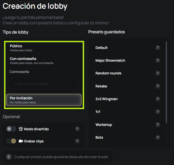 No tienes mucha libertad más allá de elegir el mapa y los modos básicos. ¿Quieres practicar solo rondas de pistolas? ¿Hacer un entrenamiento de equipo estricto? ¿Jugar un formato raro pero divertido solo para despejarte? El matchmaking estándar no está pensado para eso. Te adaptas tú al sistema, no al revés.