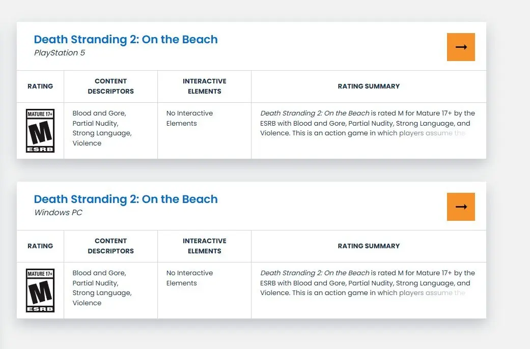 La ESRB acaba de filtrar sin querer la versión de PC de Death Stranding 2: On the Beach antes de cualquier anuncio oficial. La clasificación apareció en la web oficial del organismo estadounidense listando el juego para Windows PC con calificación M (Mature), idéntica a la versión de PS5. Y aquí viene lo interesante: el publisher registrado es Sony Interactive Entertainment, no 505 Games como pasó con el port de PC del Death Stranding original Director's Cut. Esto cambia bastante las cosas.