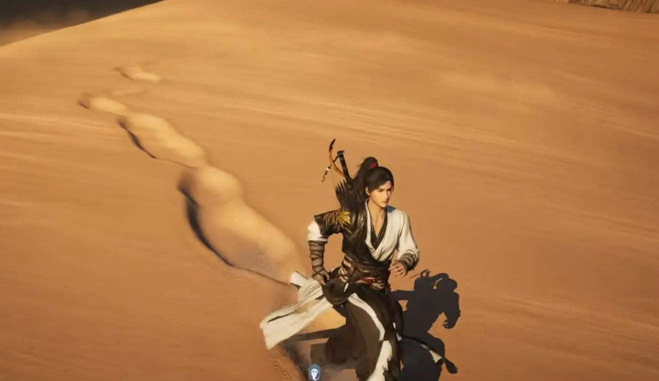 Jade Gate Pass no se limita a darte un mapa nuevo y mandarte a correr no amigos no. Las dos nuevas habilidades Wuxia que introduce el capítulo cambian fundamentalmente cómo te mueves por el mundo y cómo interactúas con él. Sand Race te permite surfear sobre la arena a toda velocidad y no es solo un sistema de desplazamiento rápido. Es una mecánica que sientes, que tiene peso y que convierte los trayectos largos por el desierto en algo divertido en lugar de tedioso. La segunda habilidad, Cosmic Reversal, es todavía más interesante porque te permite revertir el tiempo y reconstruir ruinas del desierto. Es una herramienta de exploración y podría decir de puzle a la vez que abre posibilidades que el juego base no tenía.