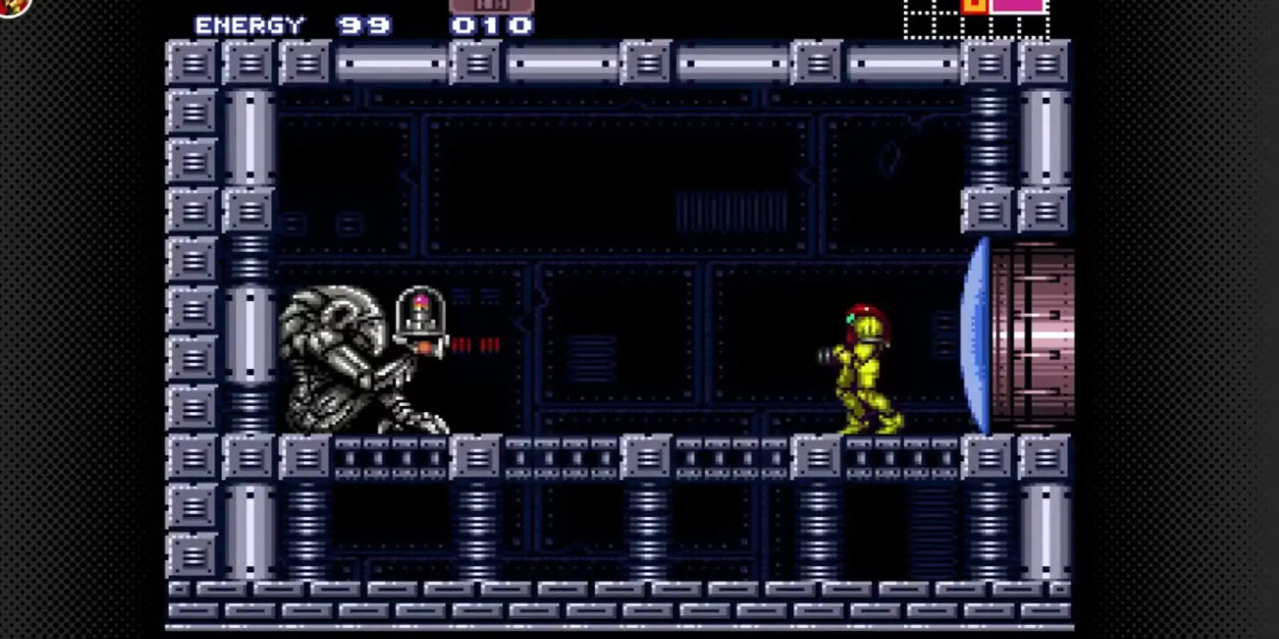 Al principio del juego entregas un Metroid bebé a unos científicos. Es el último que queda vivo después de que hayas exterminado a toda la especie. Los Piratas Espaciales lo roban y te toca ir a buscarlo a Zebes. Llegas al final y te enfrentas a Mother Brain, que te destroza. En plan te deja con 3 de vida en el suelo sin poder moverte y se prepara para darte el último golpe.
