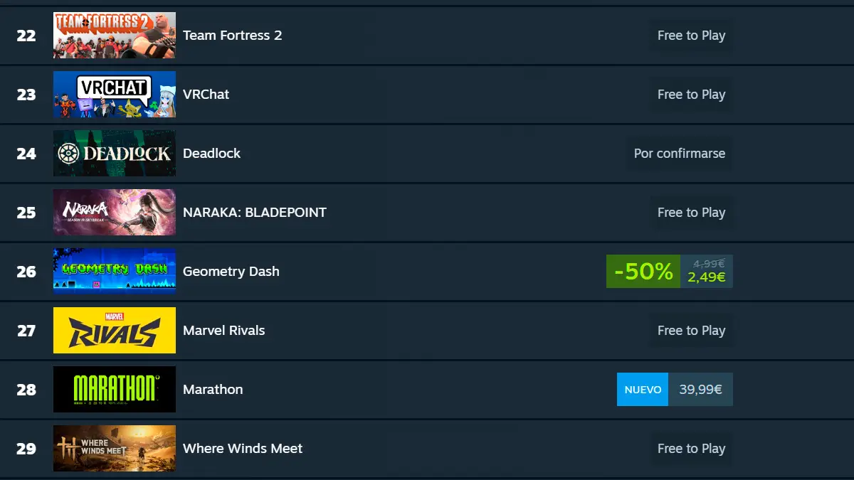 De hecho, si acudimos a la sección de juegos más populares de Steam, observaremos que Marathon se encuentra en el puesto número 28; una posición que se encuentra demasiado abajo dentro de una plataforma donde la competencia entre juegos como servicio es realmente feroz. Y, si en su día de lanzamiento; en una de sus mejores oportunidades para petarlo, no lo ha hecho. Por tanto, es improbable que estos números crezcan por arte de magia en el futuro.