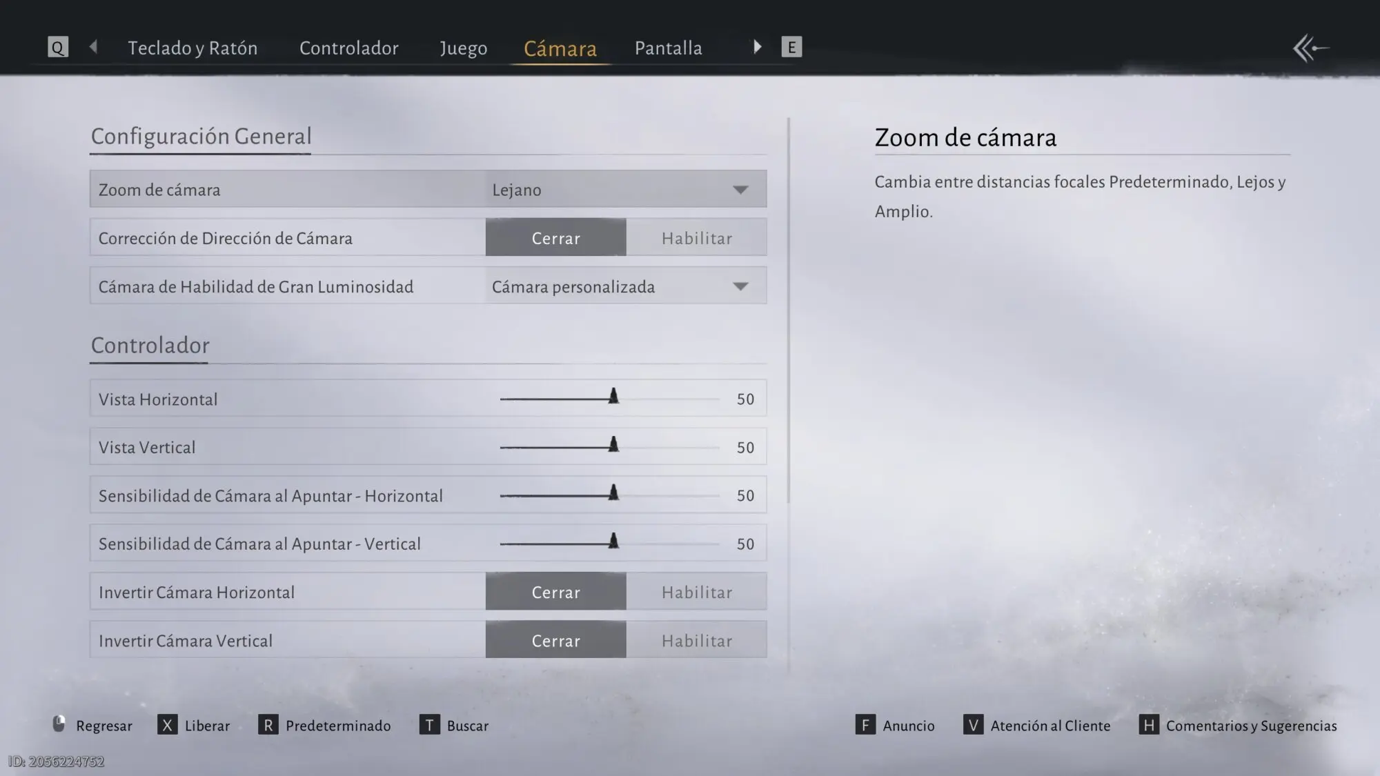 ✅ CONSEJO PRO: El zoom de cámara en "Lejos" es probablemente el cambio más importante. Te da mucha más visibilidad en combate y exploración. La configuración por defecto está demasiado pegada al personaje.
