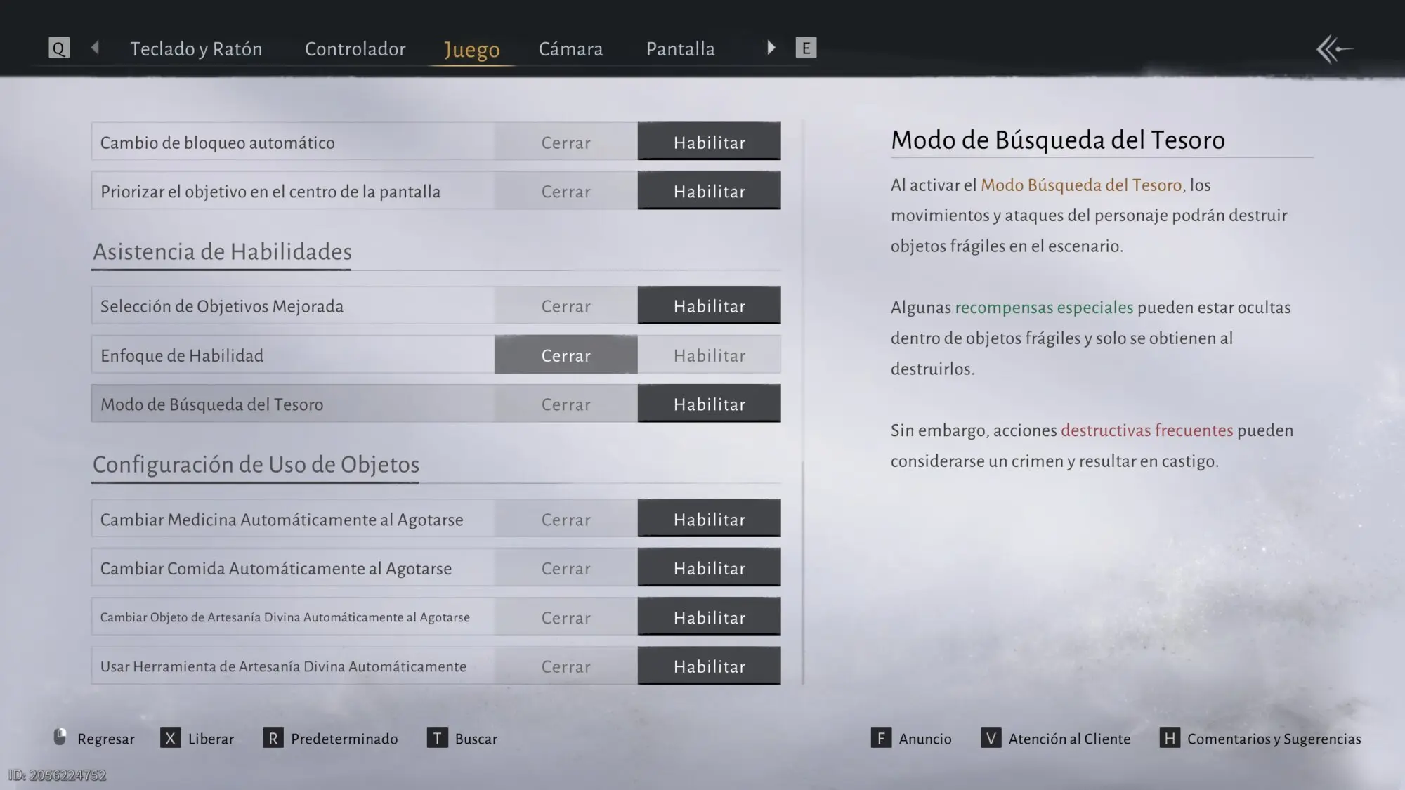 💡 IMPORTANTE: Este ajuste hace que puedas encontrar objetos ocultos rompiendo cosas en el mundo. PERO ten cuidado: algunas cosas pertenecen a NPCs. Si las rompes, aumenta tu nivel de "buscado" y puedes acabar en la cárcel.