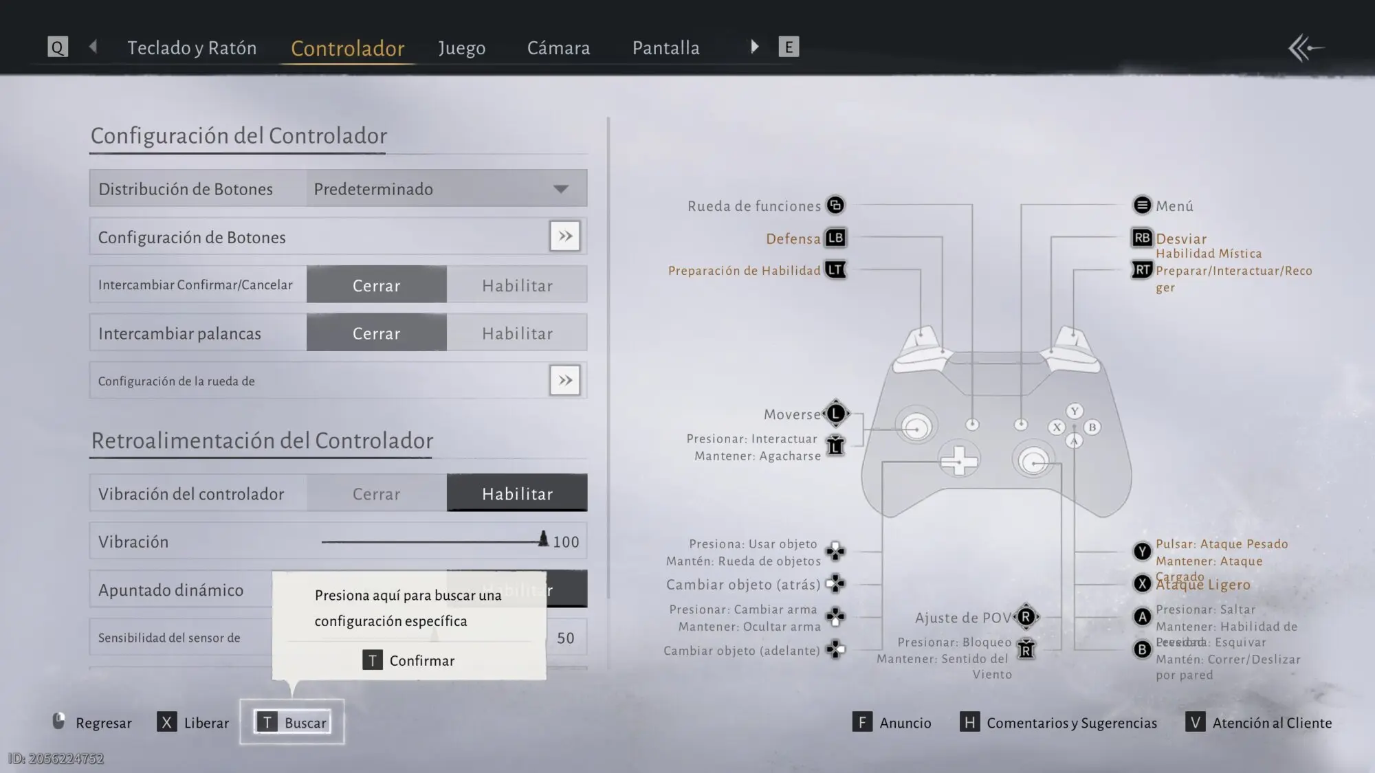 Configuración de botones Dejar por defecto La distribución es bastante intuitiva para el juego