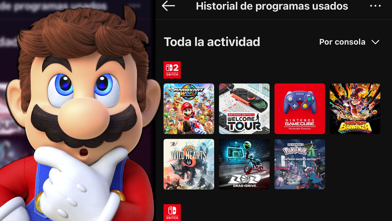 Por otro lado, también podemos ver todos y cada uno de los juegos (o programas) que hemos usado desde Wii U hasta 3DS, siendo esta la última. Es decir, no podemos ver nada de esas plataformas para atrás, algo que muchas personas extraña. Además, y como un dato curioso, todos y cada uno de los juegos cuentan con el mismo icono que aparecen en el menú de cada consola, algo genial para recordar viejos tiempos.