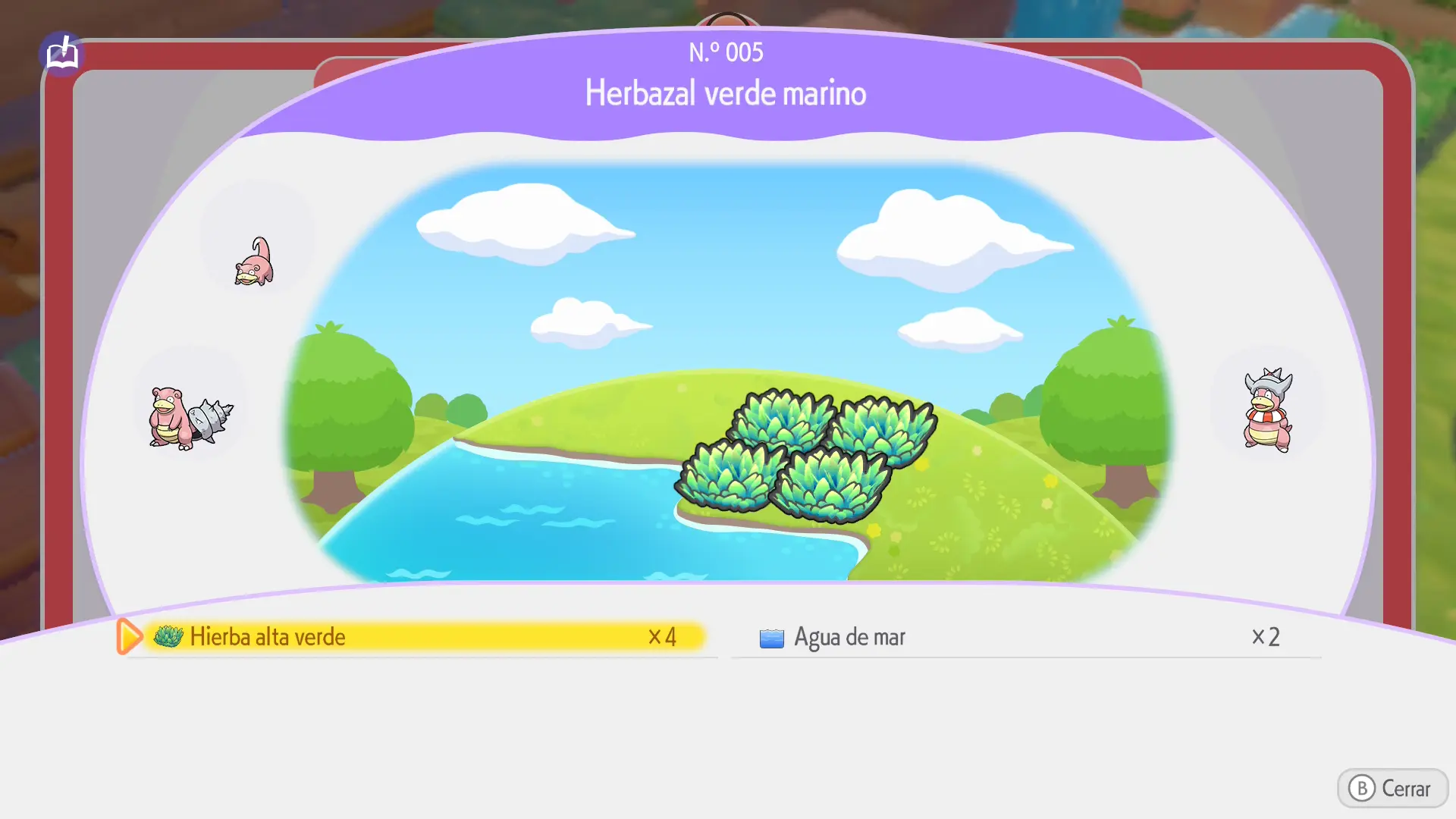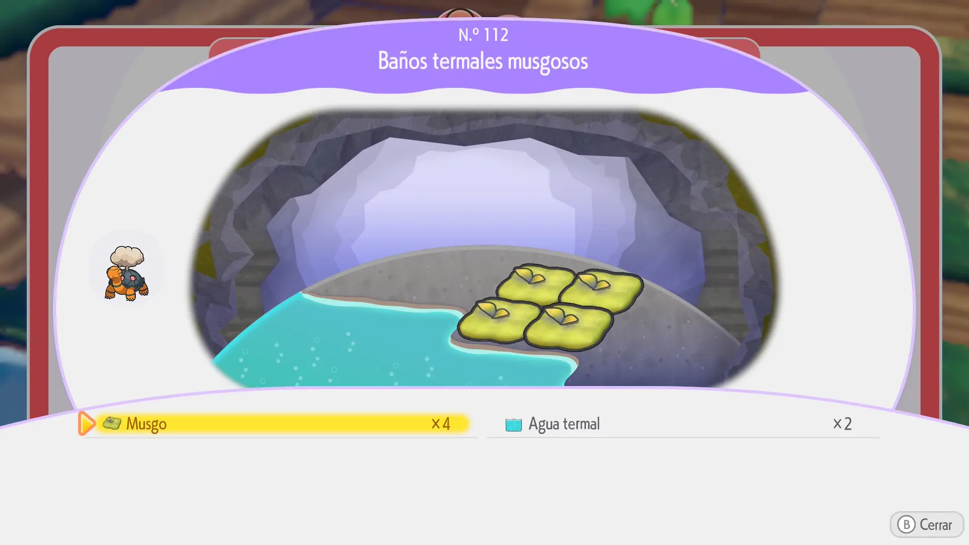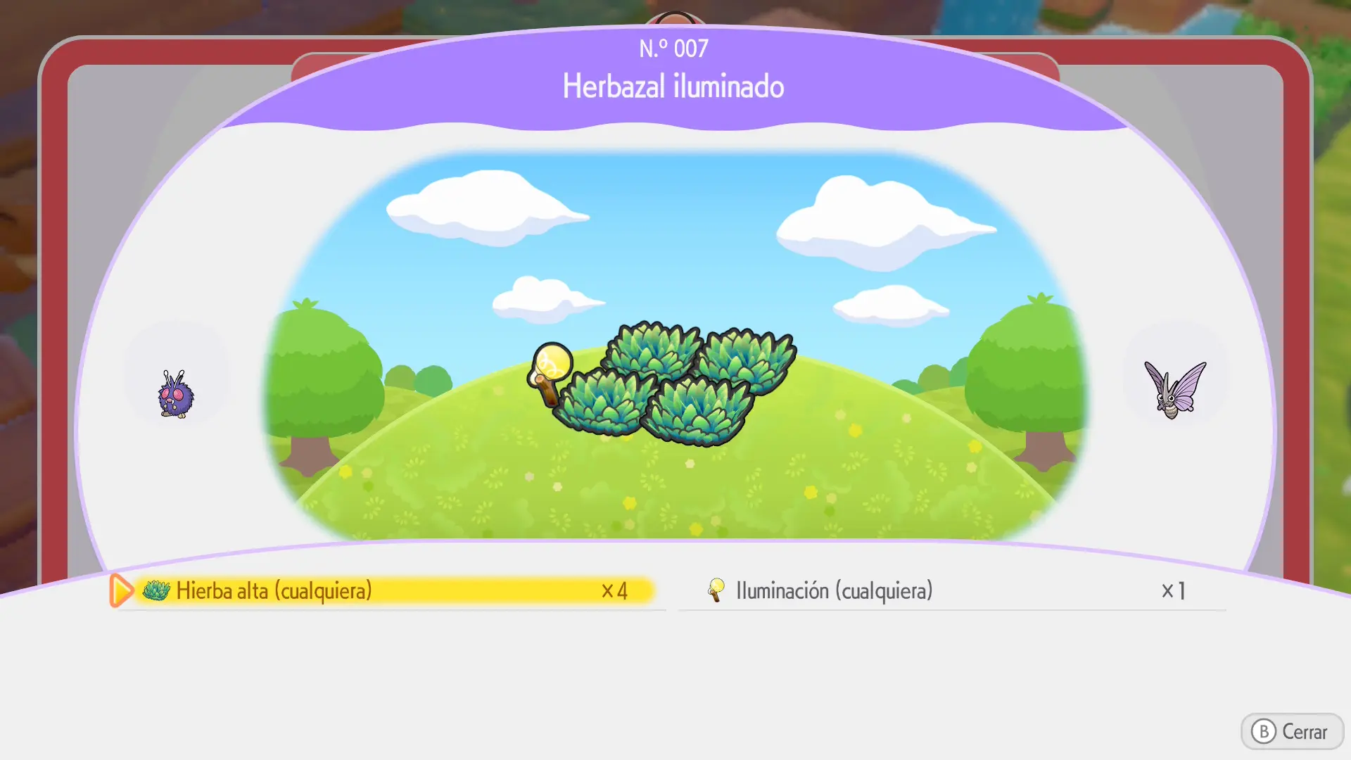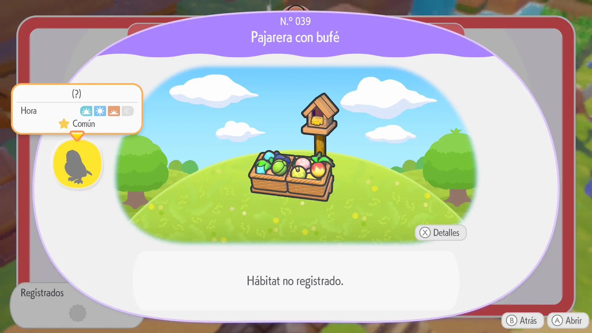 En la sección de cada Pokémon se mostrarán los siguientes datos: a qué horas aparece, en qué condiciones climáticas, su especialidad y una breve descripción de los materiales necesarios para crear su hábitat