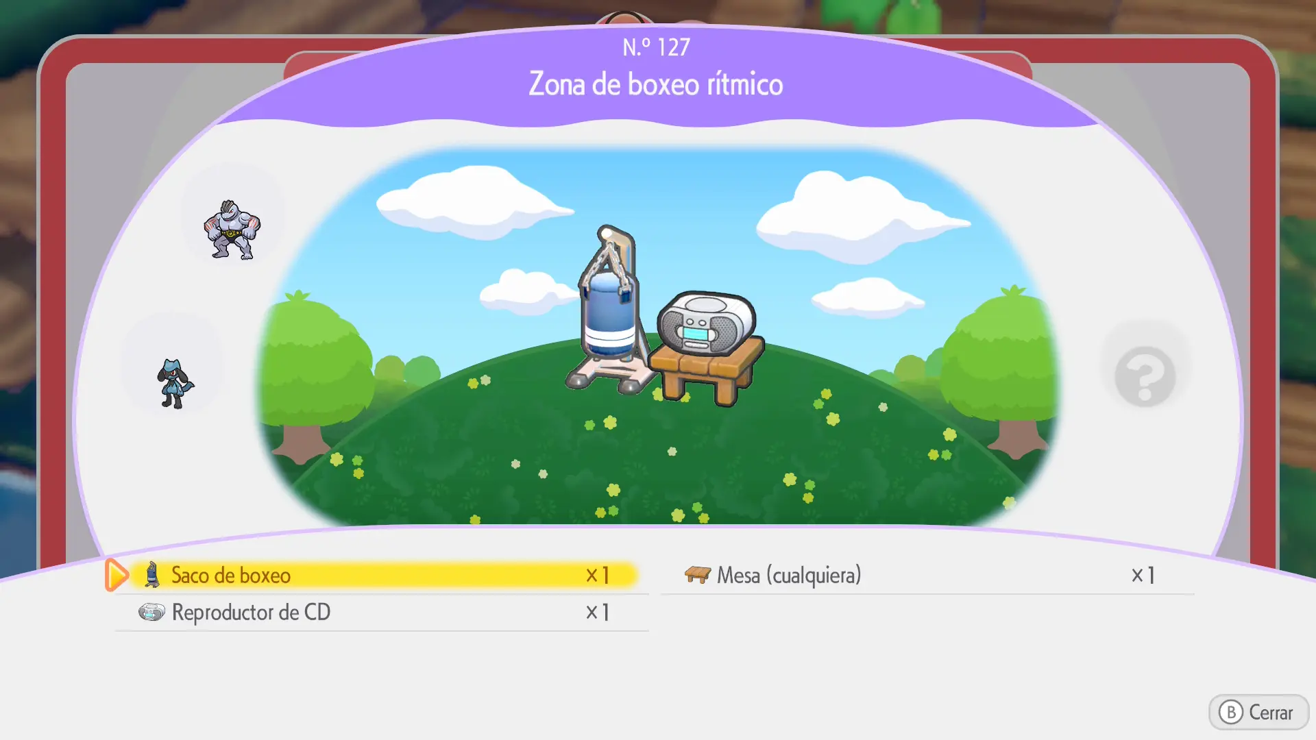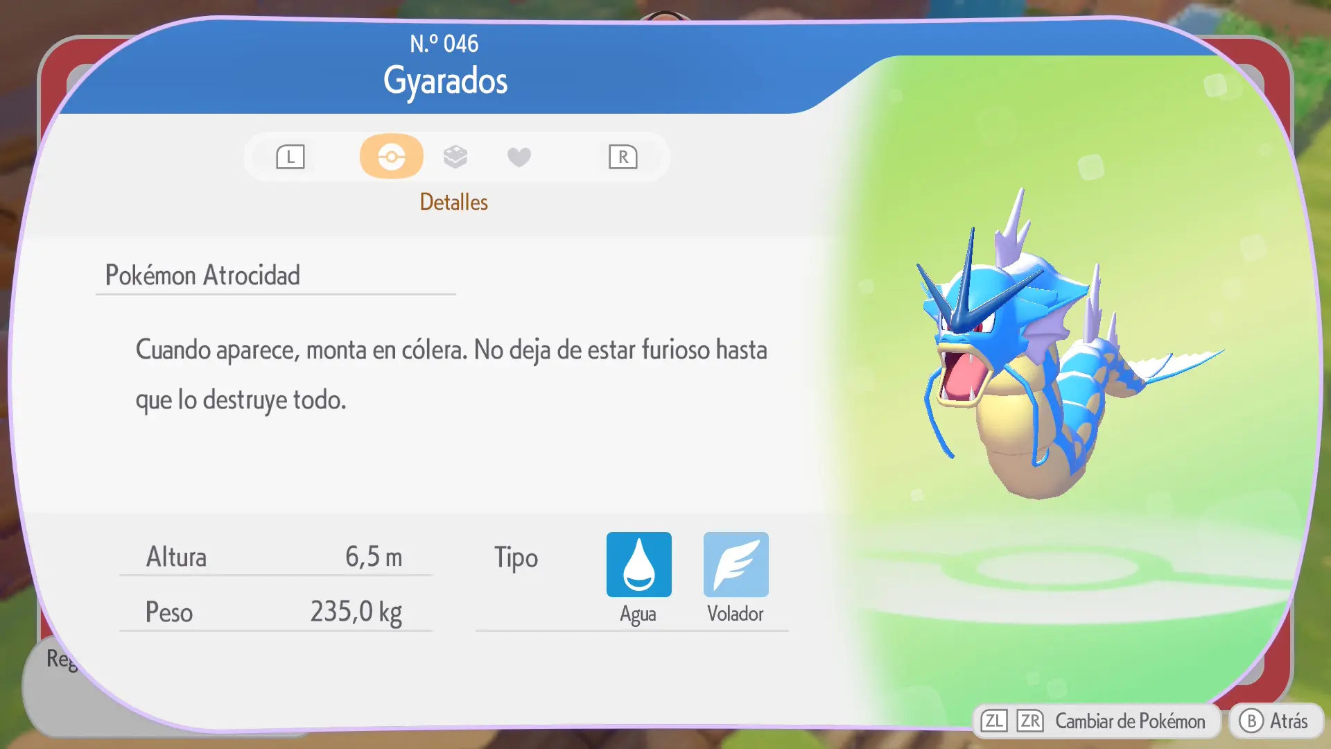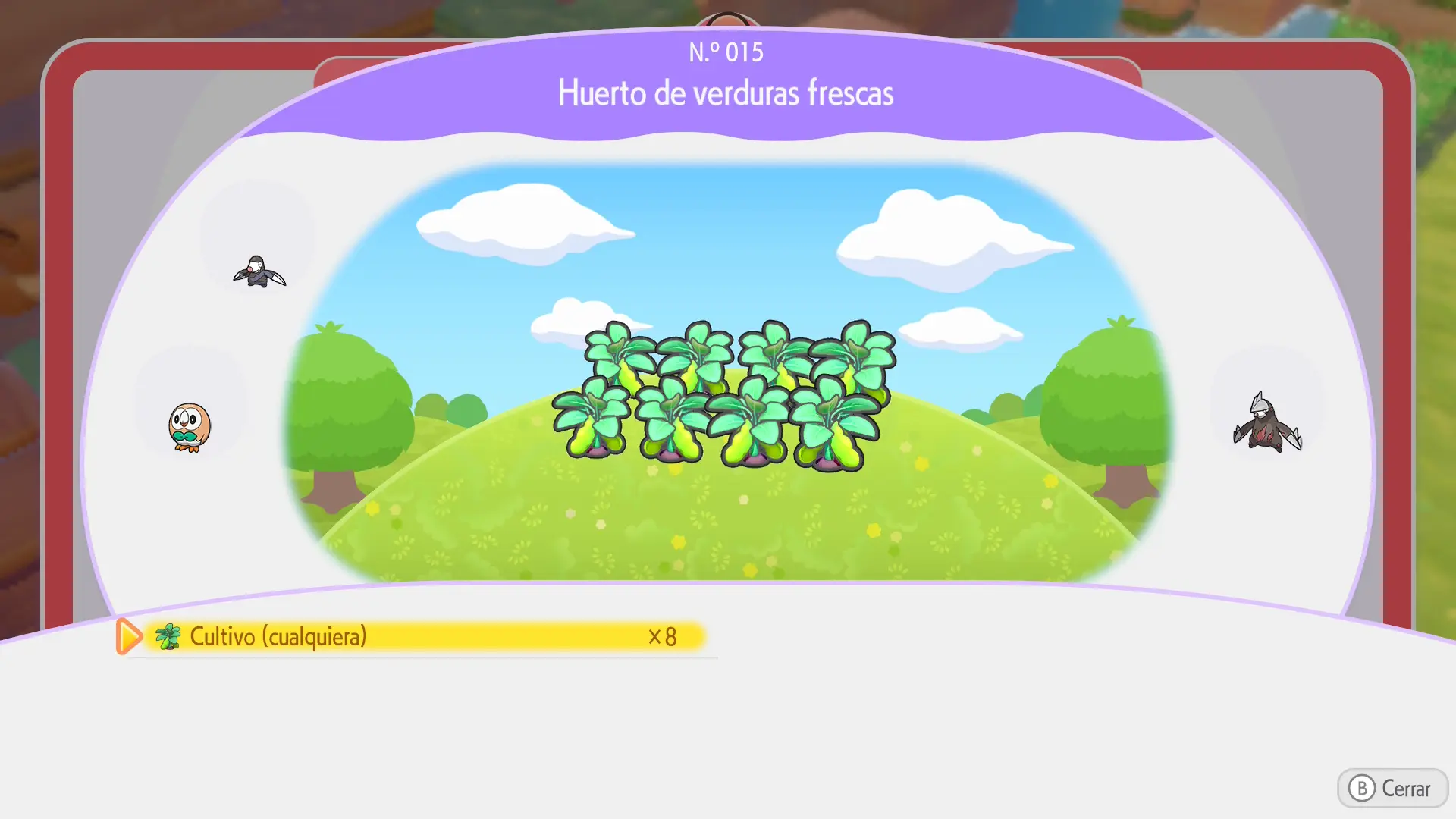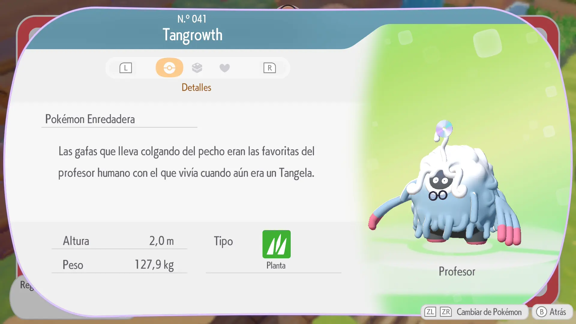 En la sección de cada Pokémon se mostrarán los siguientes datos: a qué horas aparece, en qué condiciones climáticas, su especialidad y una breve descripción de los materiales necesarios para crear su hábitat
