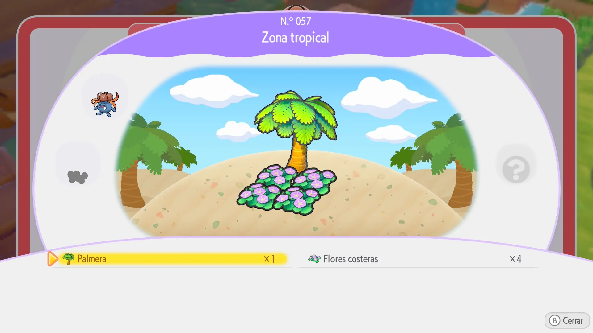Se crea juntando 4 flores costeras alrededor de una palmera (ambos elementos están disponibles tanto en tu isla como en el bioma de Bahía Borrasca)