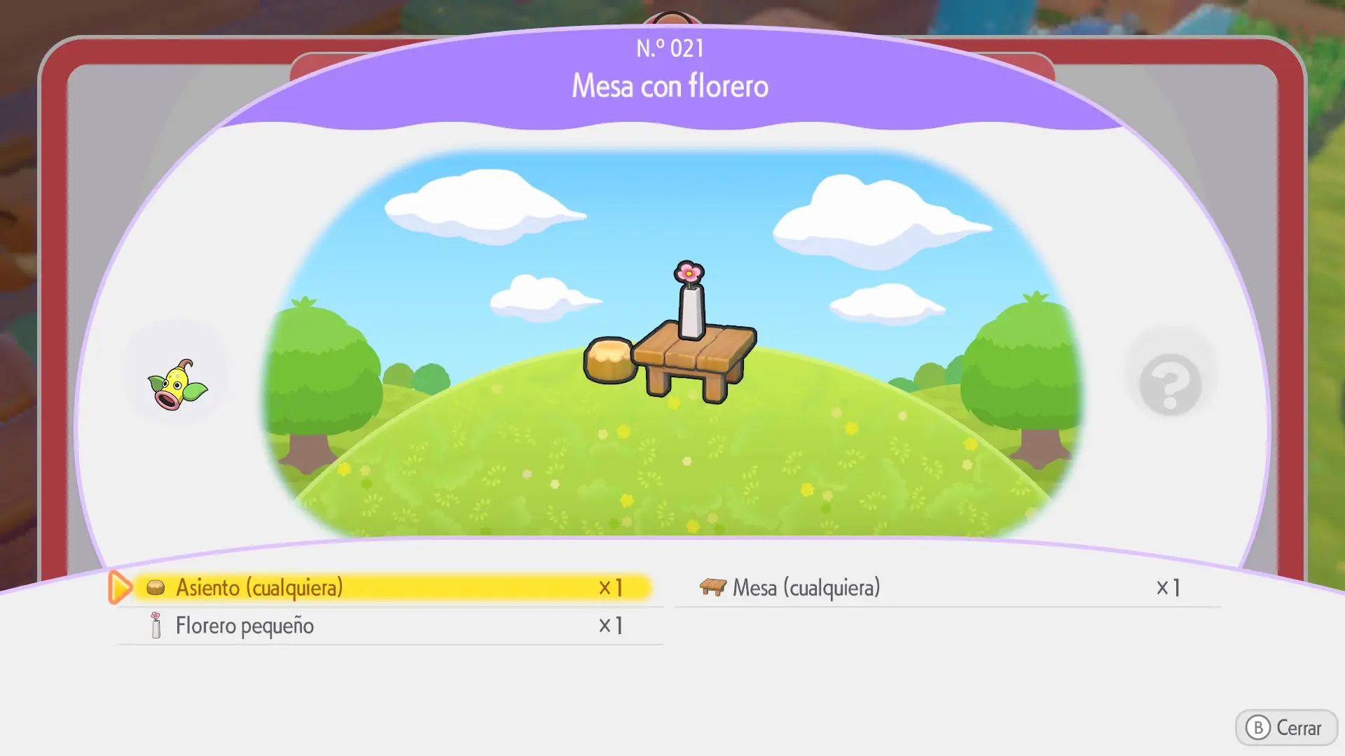 Se crea juntando 4 flores silvestres entre sí (se encuentran en el bioma de Estepa Estéril. Podrás arrancar las que veas por ahí con la habilidad de Arar para colocarlas donde quieras. También podrás plantarlas desde cero comprando sus semillas en el Centro Pokémon u obteniéndolas al recoger Pokéballs rojas y completando peticiones para los Pokémon)