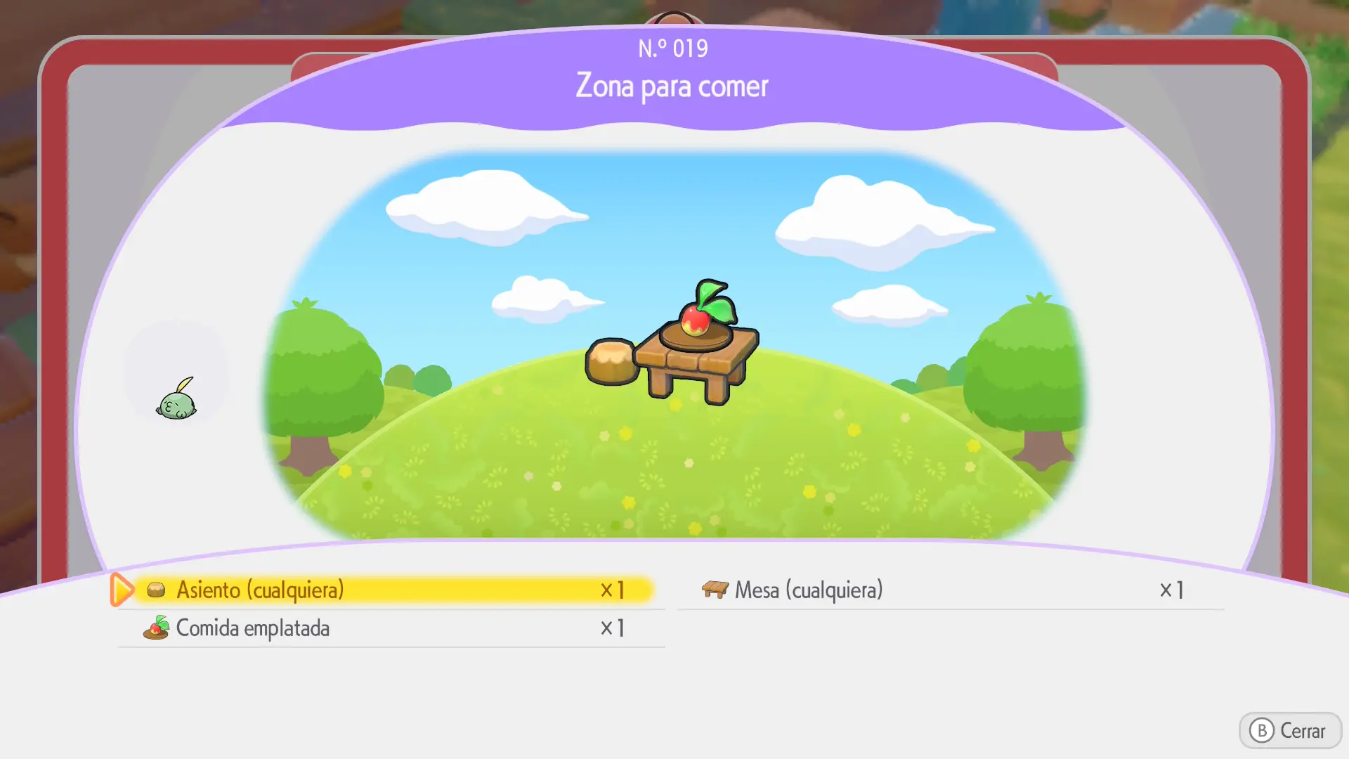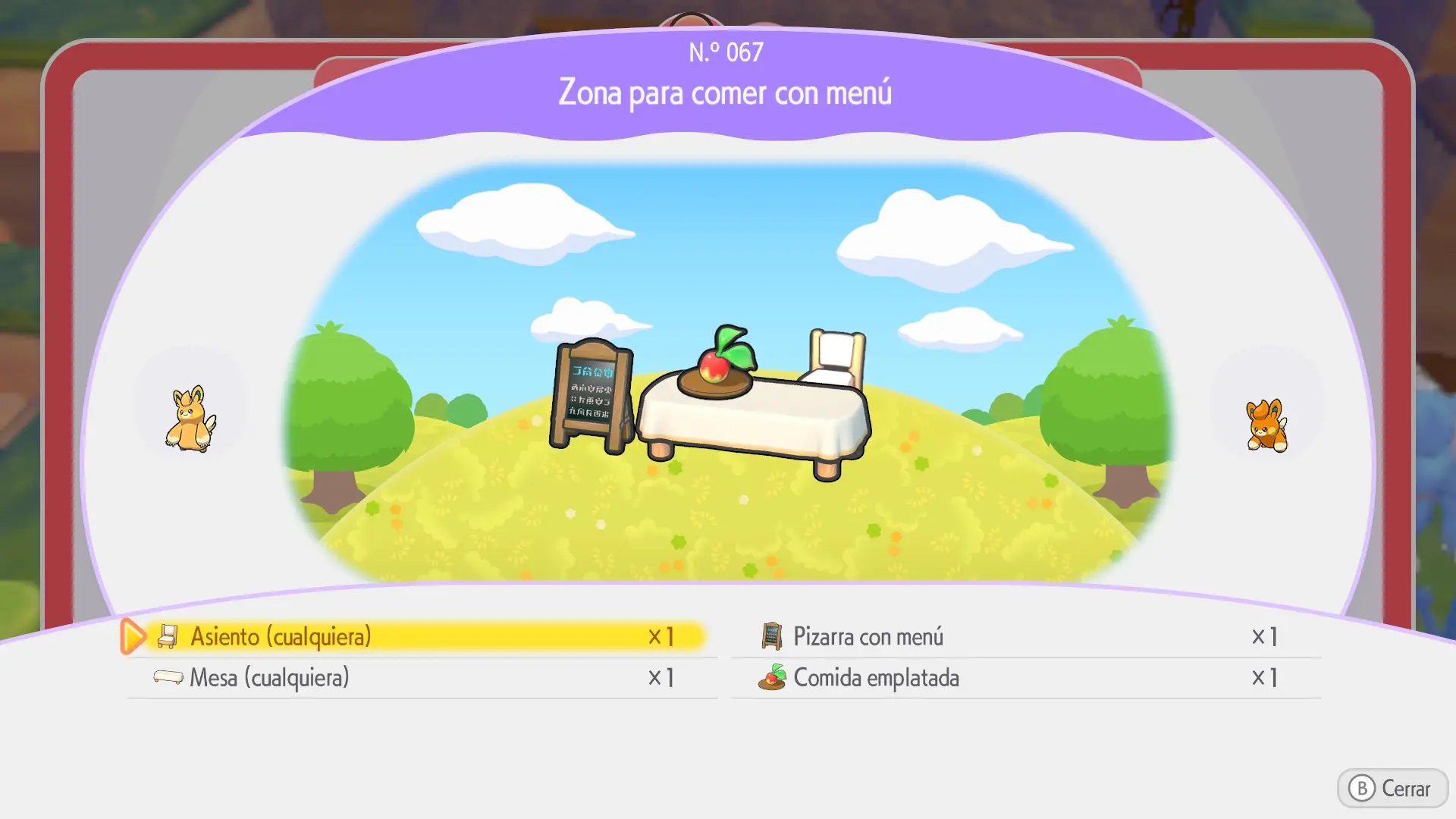 Hábitat necesario: Zona para comer con menú
