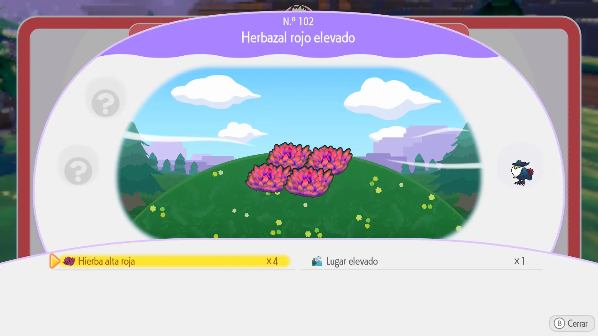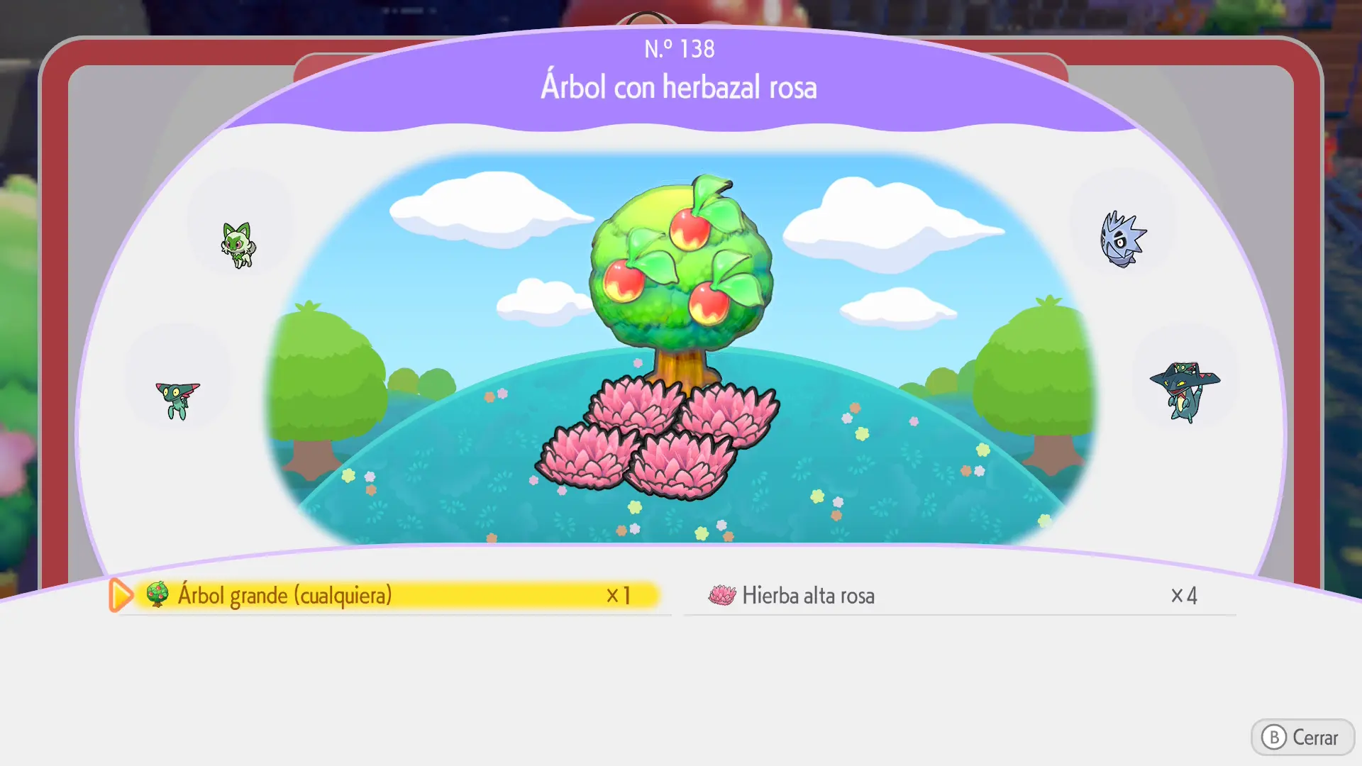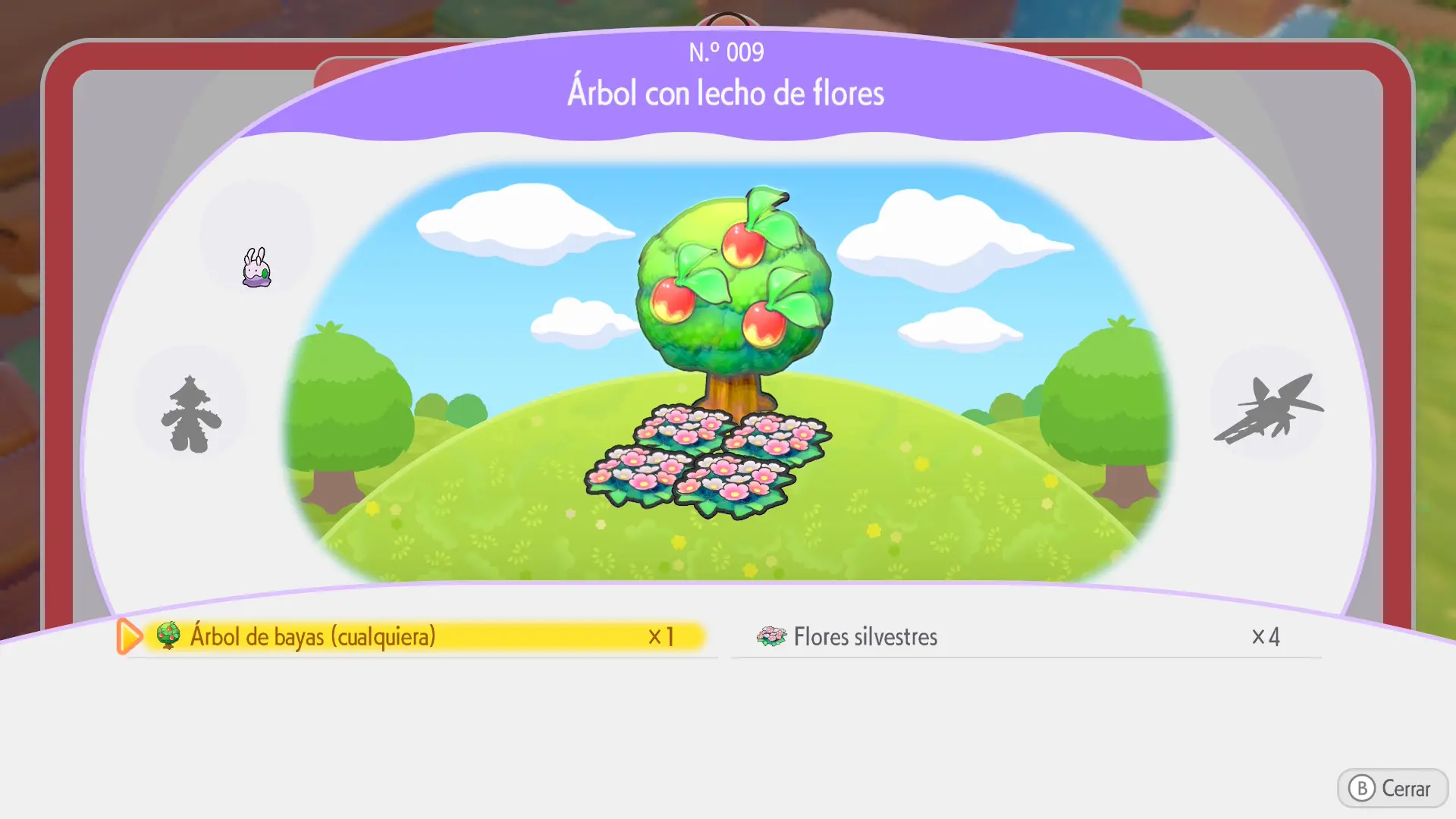 Se crea juntando 4 flores silvestres entre sí en una zona elevada como, por ejemplo, la cima de una montaña (se encuentran en el bioma de Estepa Estéril. Podrás arrancar las que veas por ahí con la habilidad de Arar para colocarlas donde quieras. También podrás plantarlas desde cero comprando sus semillas en el Centro Pokémon u obteniéndolas al recoger Pokéballs rojas y completando peticiones para los Pokémon)