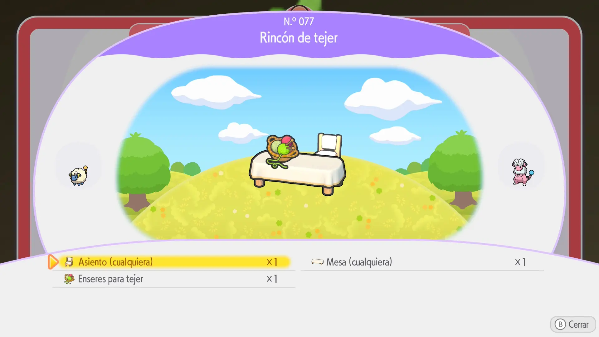 1 Enseres de tejer: puedes comprarlo en el Centro Pokémon de Bahía Borrasca