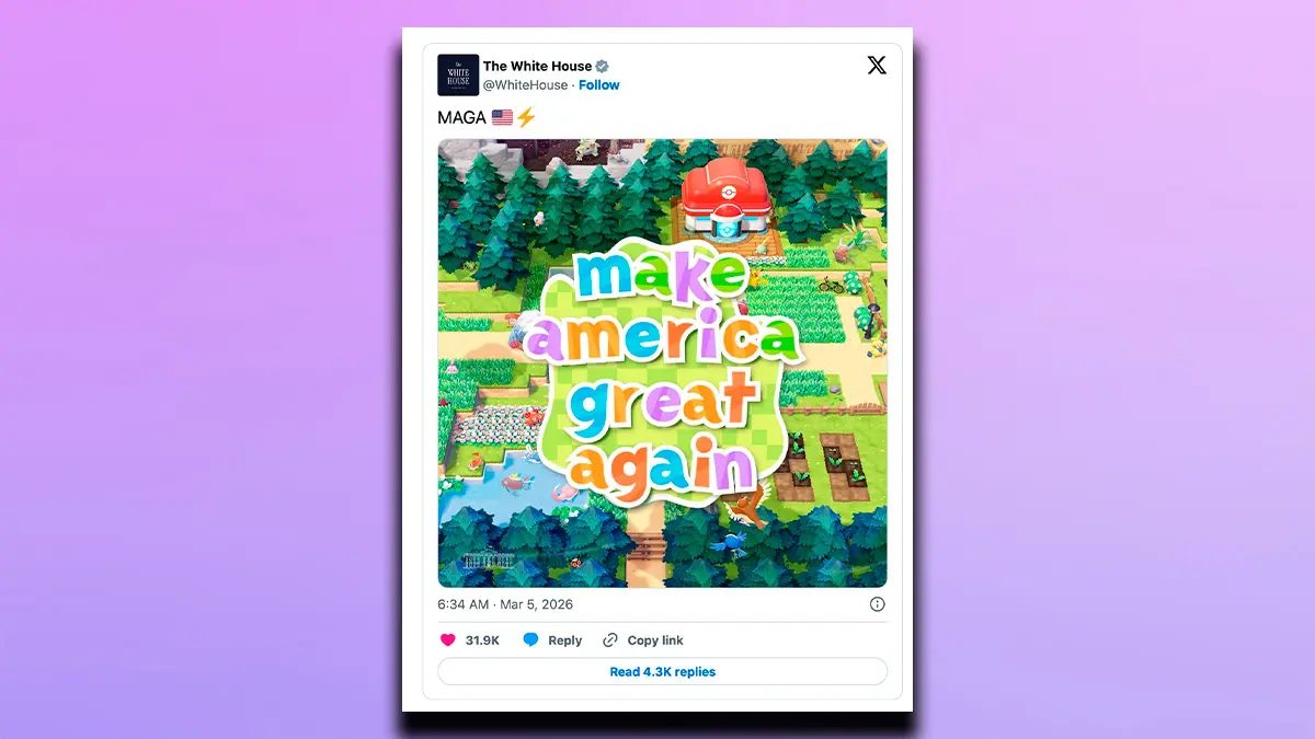 El quid de la cuestión es que la cuenta de la Casa Blanca ha lanzado una publicación en X donde se valía de la tipografía e imagen de Pokémon Pokopia para lanzar un mensaje político: Make America Great Again, el cual consta como uno de los principales eslóganes de la campaña de Donald Trump. Ante estas circunstancias, The Pokémon Company se ha visto en la obligación de posicionarse frente a ello a través de un comunicado (el cual ha sido recogido por New York Times).