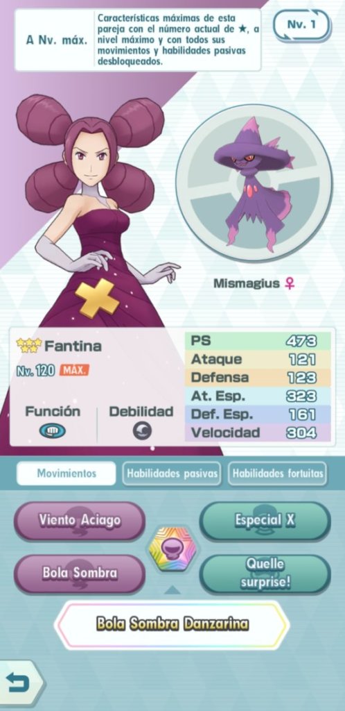 Ahora ya tenemos disponible otro reclutamiento. Fantina, la líder de gimnasio de Ciudad Corazón, en Sinnoh. Está especializada en el tipo fantasma, y también es experta en los Concursos Pokémon. Fantina llega a Pokémon Masters acompañada de uno de sus compis de tipo fantasma: Mismagius. Esta criatura, conocida como el pokémon mágico, tiene la capacidad de recitar cánticos que pueden atormentar o provocar felicidad a sus rivales. Si conseguimos reclutar a esta pareja de compis, podremos entrenarla y subirla de nivel fácilmente gracias al evento de desarrollo de tipo fantasma que está teniendo lugar estos días. Fantina y Mismagius son una pareja de 5 estrellas. Podéis consultar toda la información relativa a estos compis en las imágenes que os dejamos a continuación. Tenéis hasta el 2 de abril para intentar que se unan a vuestro equipo.