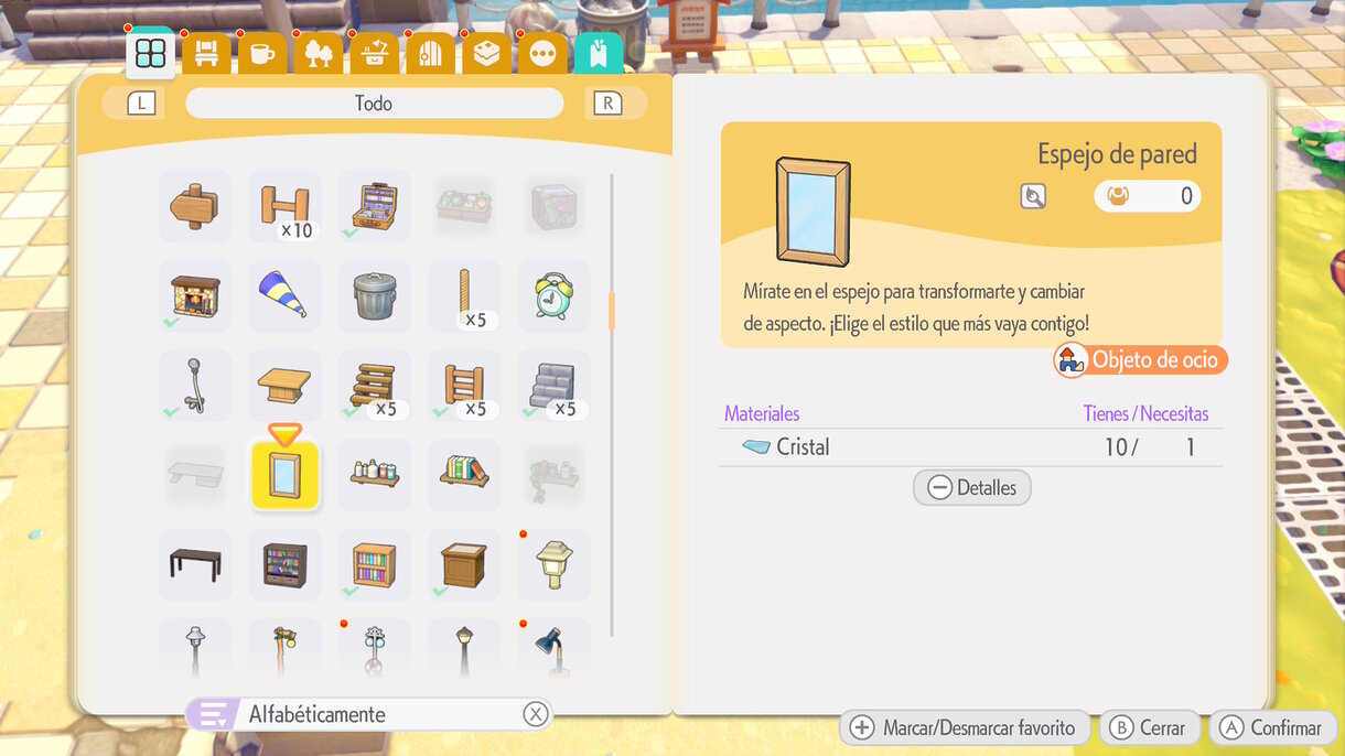 Para poder cambiar tu aspecto en Pokémon Pokopia, ya sea el peinado, la ropa o las facciones de tu Ditto, basta con que fabriques un espejo en el juego. Al colocarlo sobre cualquier parte y pulsar el botón ¨x¨ junto a él, volverás al menú de personalización de tu avatar y podrás hacer las modificaciones que quieras. Lo bueno es que vale cualquier espejo, pero hay uno que es muy fácil de fabricar: