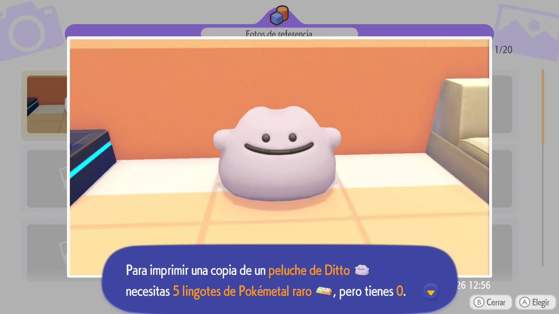 Ahora solo deberás sacar una foto al objeto en cuestión e interactuar con la impresora 3D. Al hacerlo, esta te mostrará un menú con las capturas que has hecho de los ítems que vayas a clonar y tendrás que elegir aquella en la que aparezca el objeto que quieras. Eso sí, cada vez que quieras clonar un artículo, deberás pagar 5 pokélingotes de pokémetal raro a cambio.