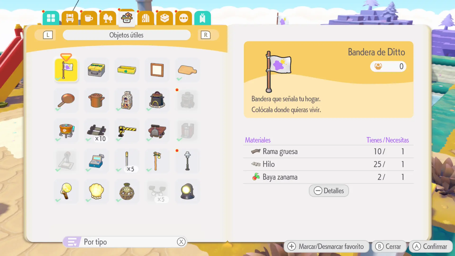 El hilo tiene muchos usos diferentes en Pokémon Pokopia, pero uno de los más cruciales tiene que ver con las Banderas de Ditto. Sobre todo, porque este último objeto nos permitirá fijar puntos de viaje rápido en las distintas zonas del juego y, precisamente, su receta de crafteo requiere hilo. Esto es lo que necesitarás concretamente para crearlo: