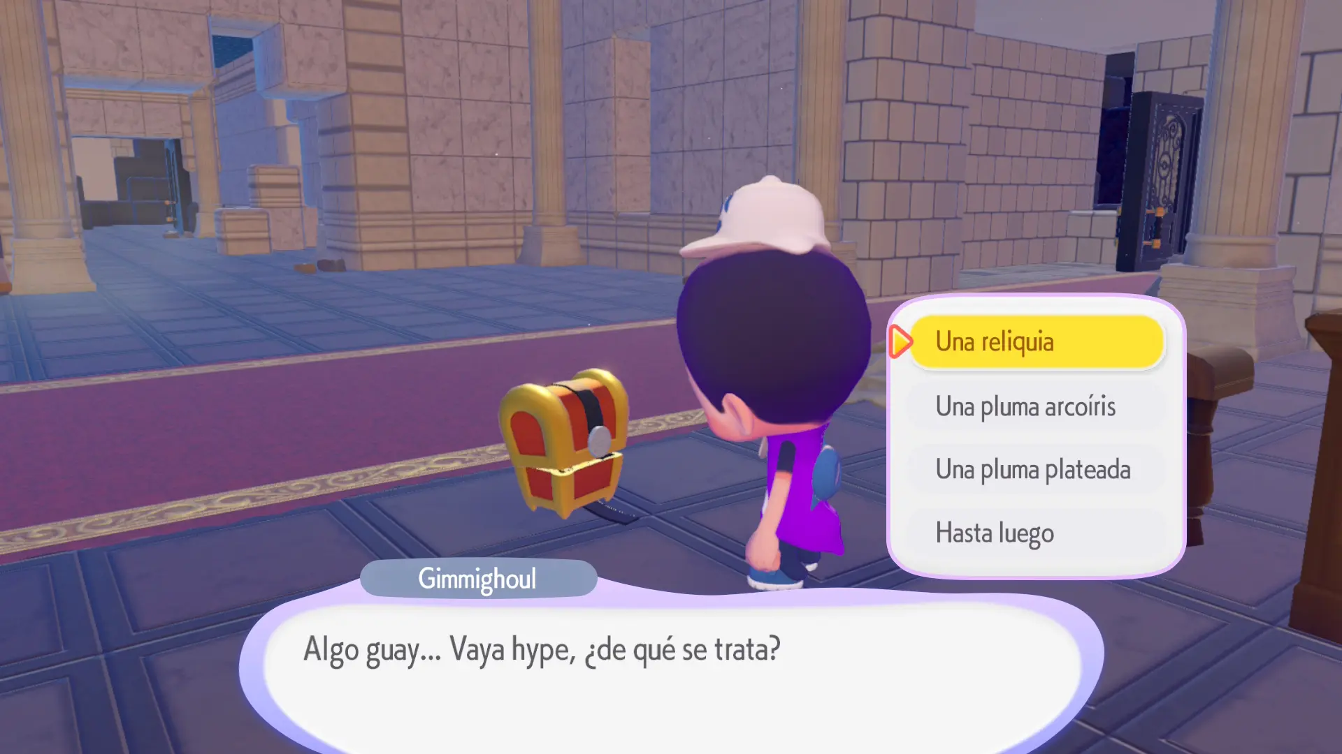 Tanto las plumas arco iris como las plumas plateadas son ítems que podemos canjear a cambo de muebles especiales, los cuales pertenecen a una colección exclusiva dentro del juego que solo se desbloquean gracias a un Pokémon concreto. Este último se trata de Gimmighoul, el cual se encuentra en la zona del museo que encontrarás en el bioma de Riscos Rocosos (más allá del área de lava subterránea que hay en la parte más profunda de sus cuevas).