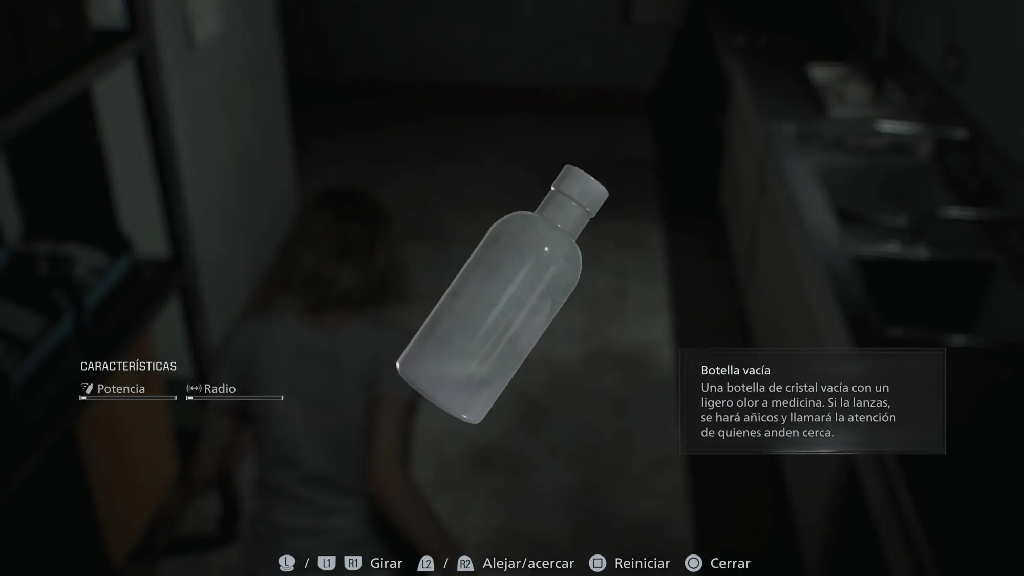 Casi al principio del tramo encuentras una Botella vacía en el suelo. La descripción del juego lo explica todo: "Una botella de cristal vacía con un ligero olor a medicina. Si la lanzas, se hará añicos y llamará la atención de quienes anden cerca." Es tu única herramienta táctica en este segmento. Guárdala para cuando la necesites de verdad, que será más adelante.
