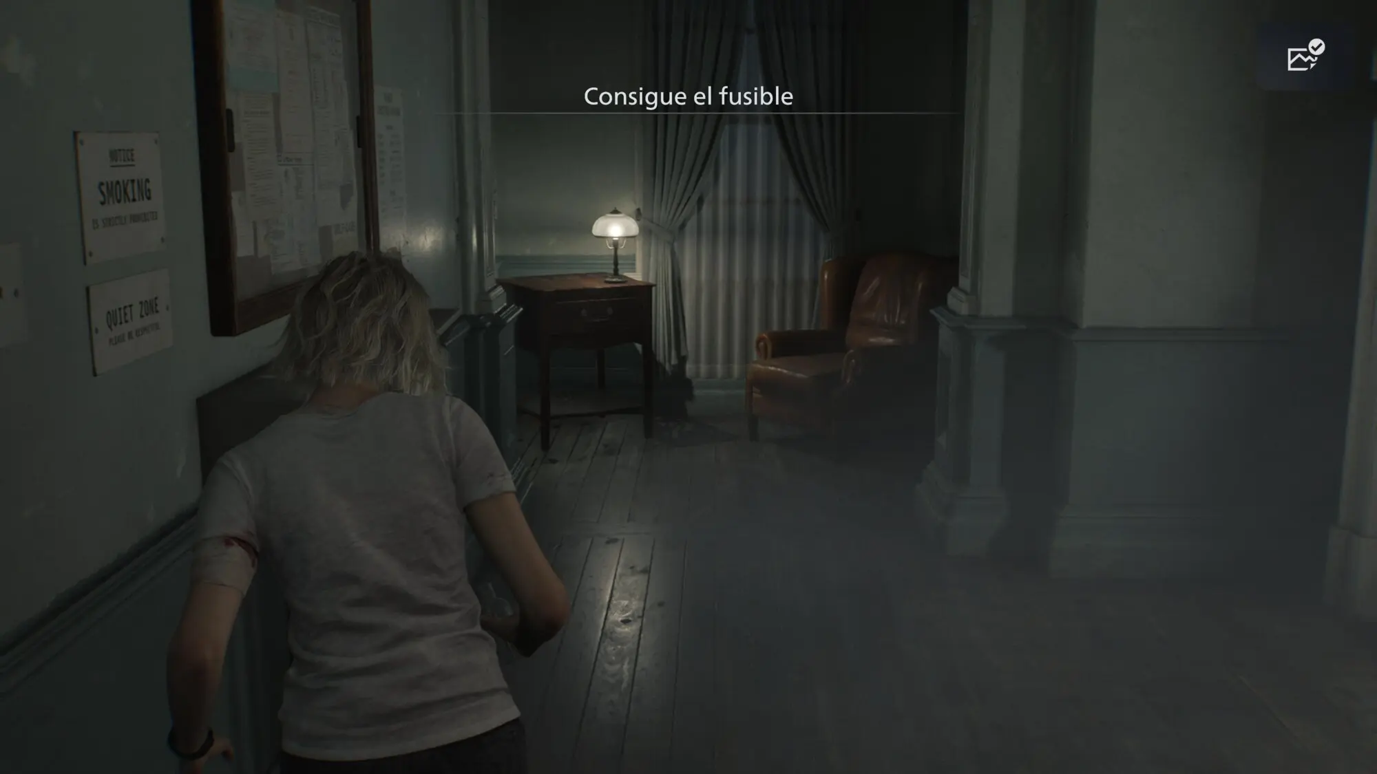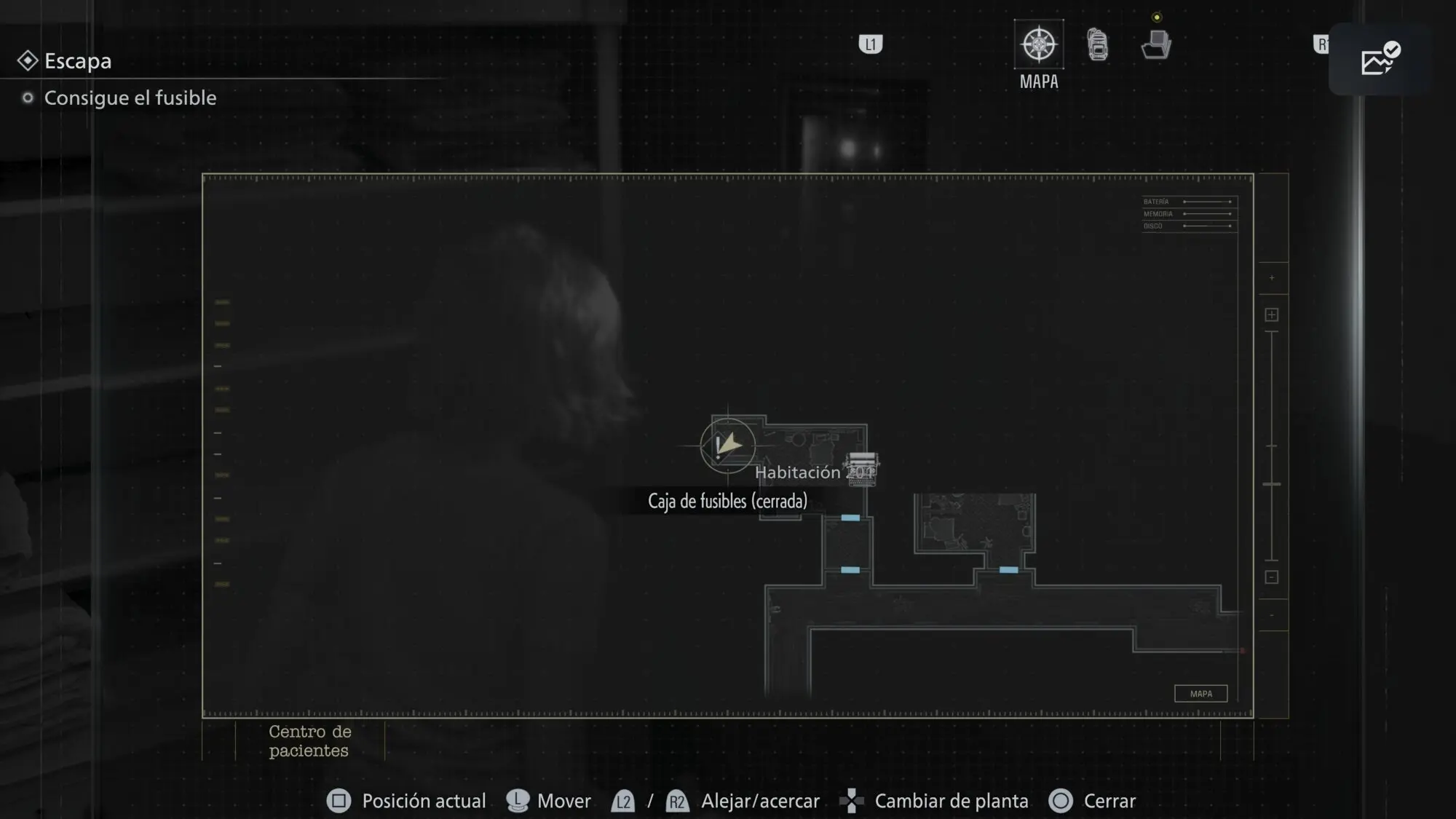 El objetivo central de la primera parte del hospital es conseguir el fusible para activar la caja eléctrica que controla la puerta de salida. El proceso tiene tres pasos claros: