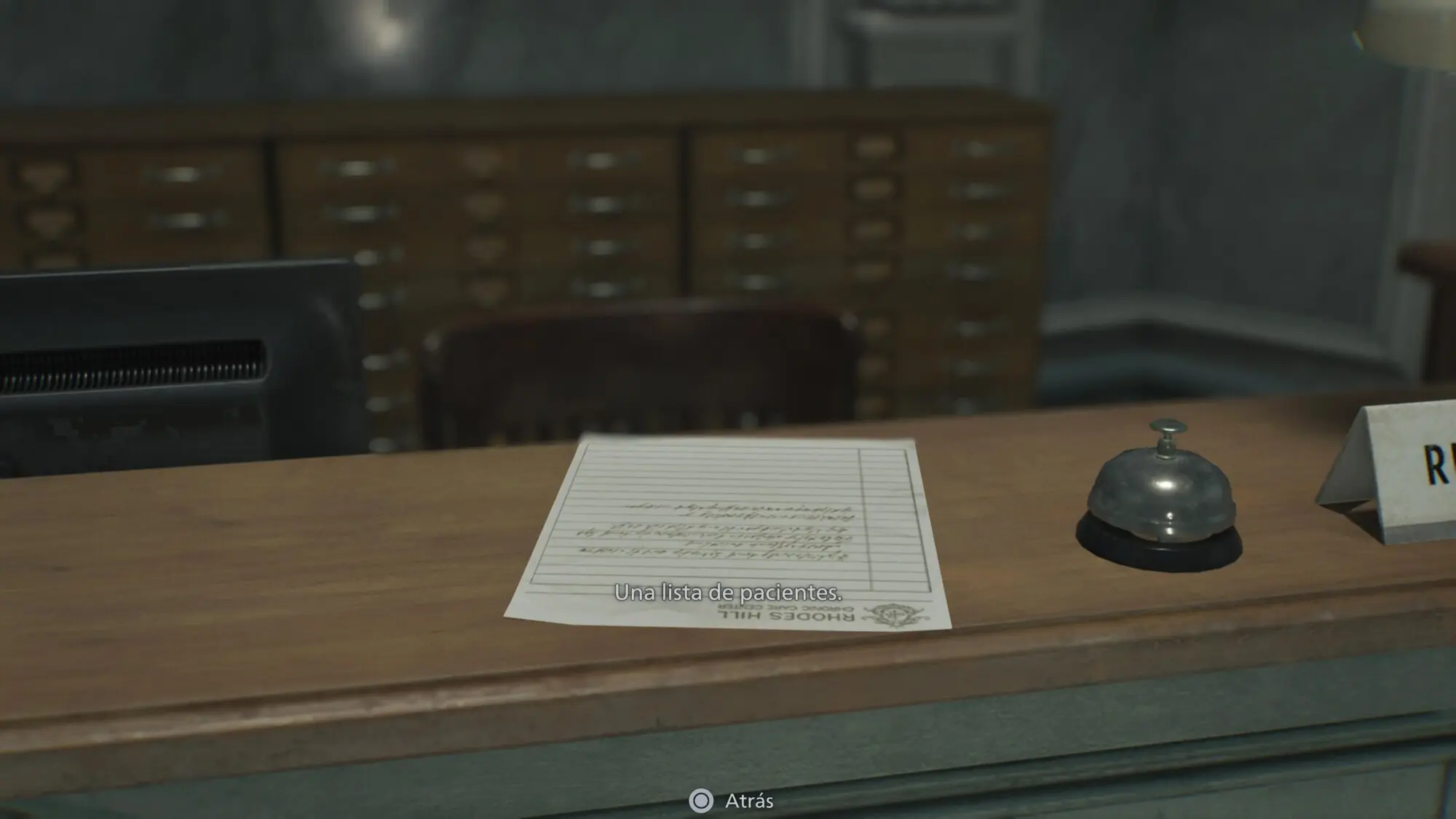 En el mostrador de recepción del ala, sobre el escritorio de madera con su timbre de hotel anacrónico, hay un documento recogible: "Una lista de pacientes" — membretada con el sello de Rhodes Hill Chronic Care Center. No es una lista médica ordinaria.
