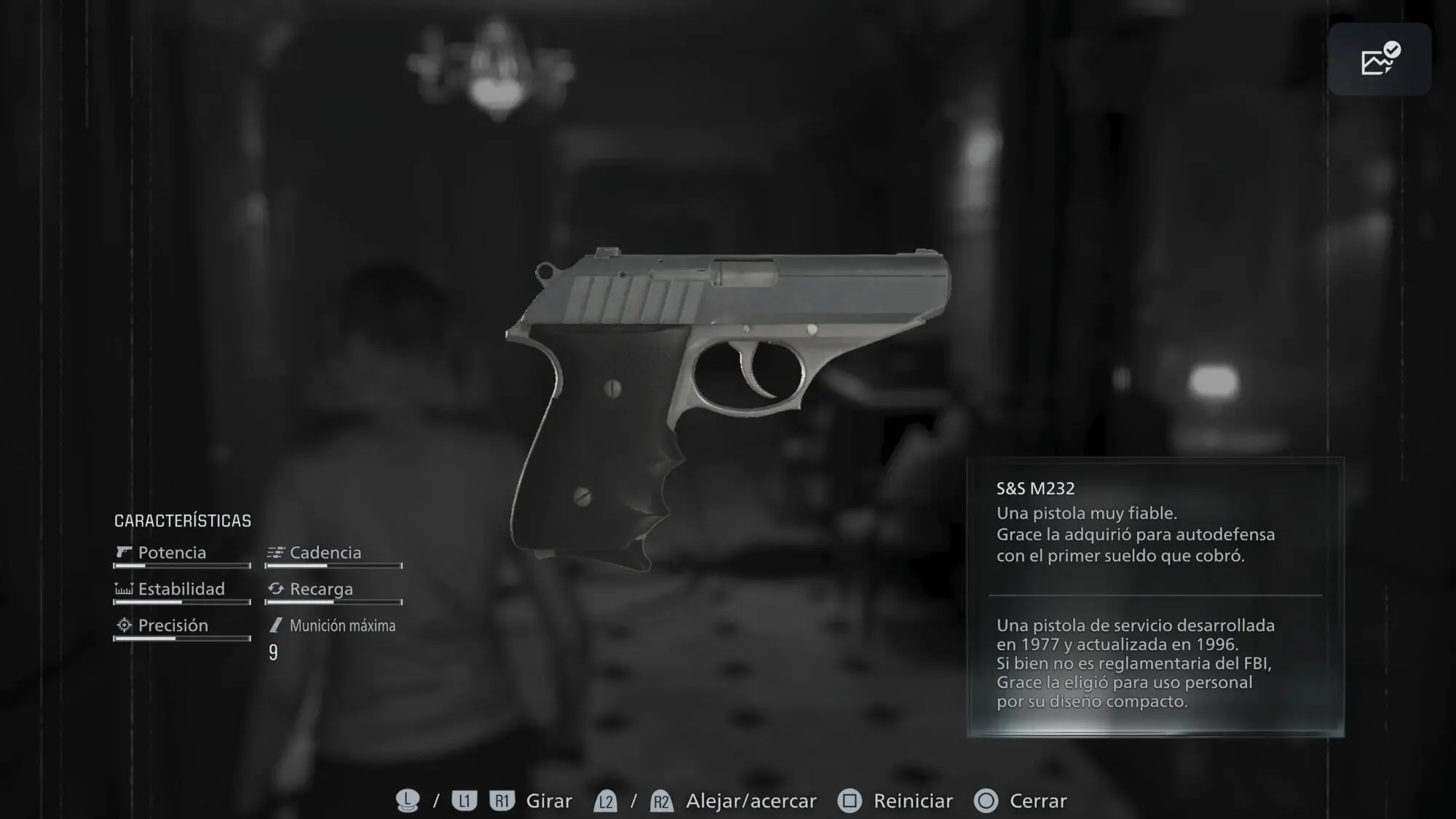 | B934 | Pistola — 7 balas máximo | Arma principal de Grace en este tramo. Úsala solo cuando no puedas esquivar |