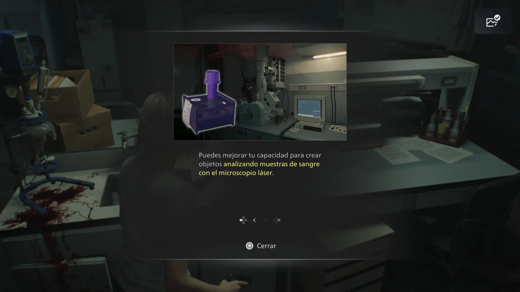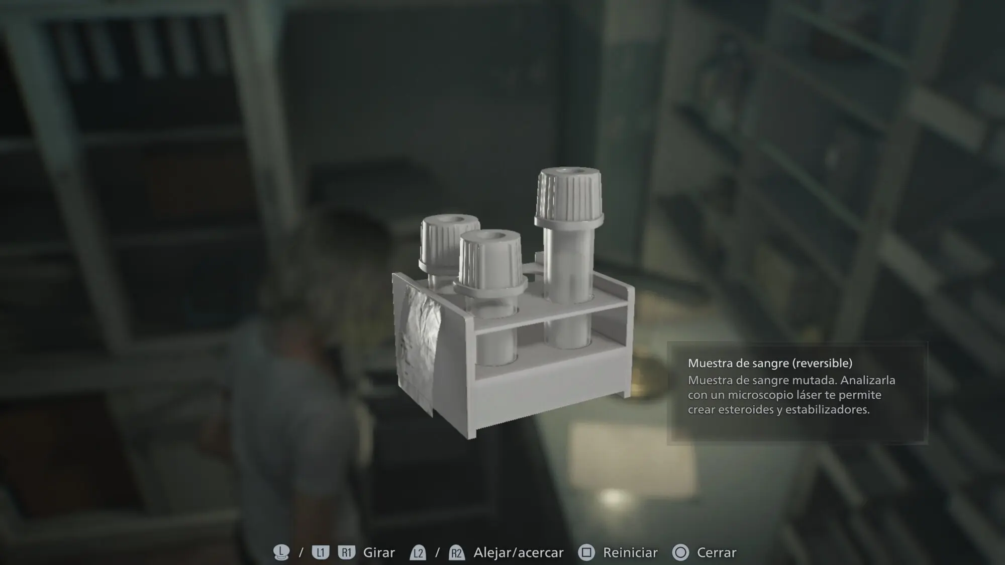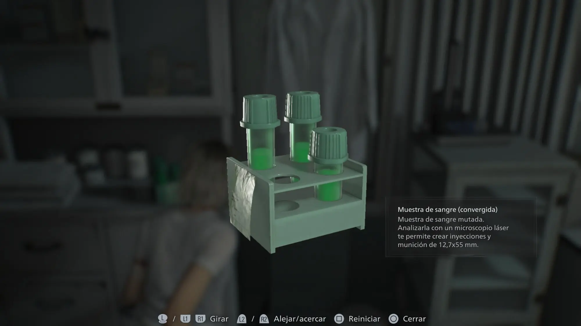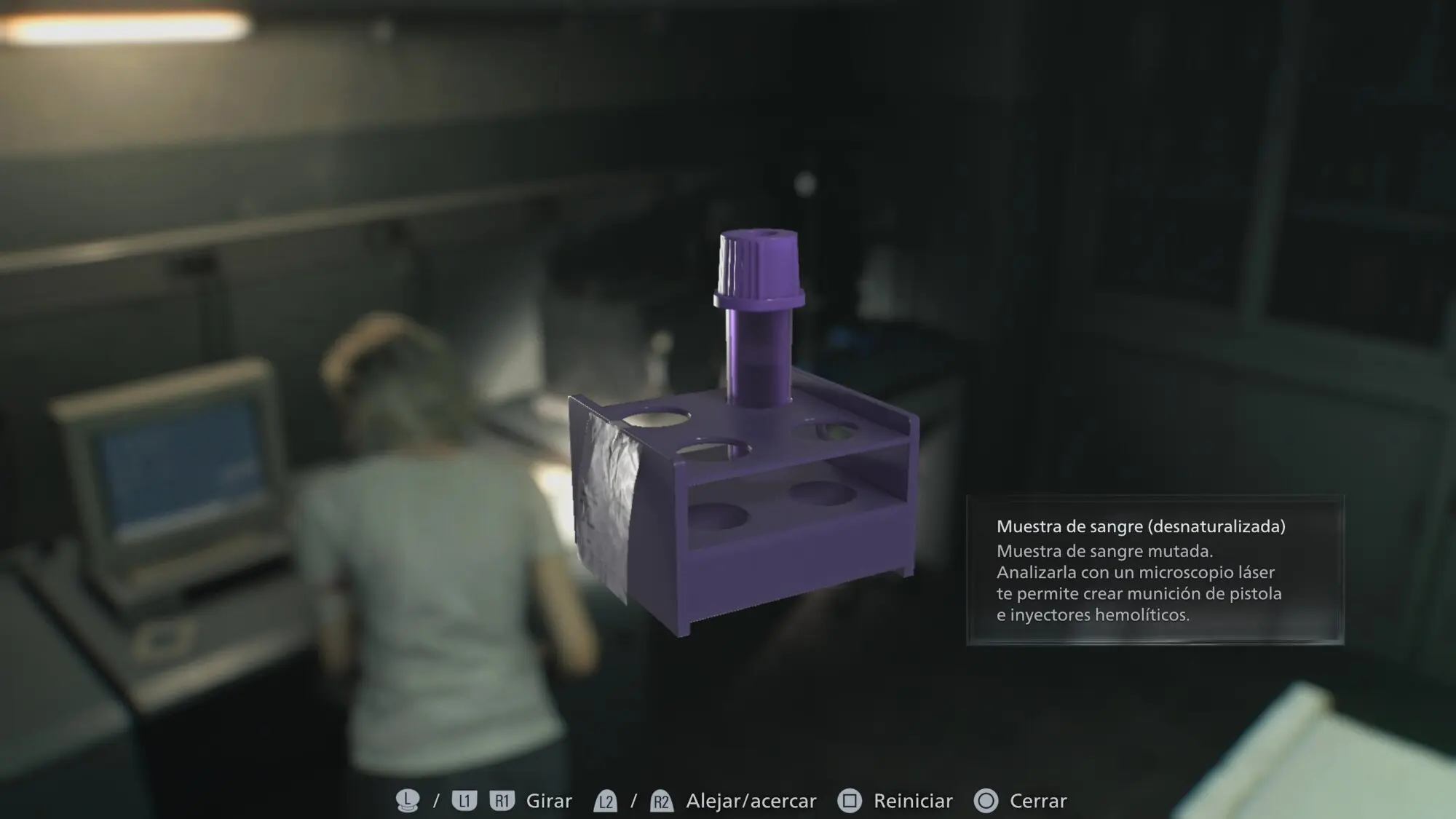 | Muestra de sangre (desnaturalizada) | Laboratorio / Unidades hospitalarias | Insertarla en el microscopio láser para desbloquear diagramas de fabricación |