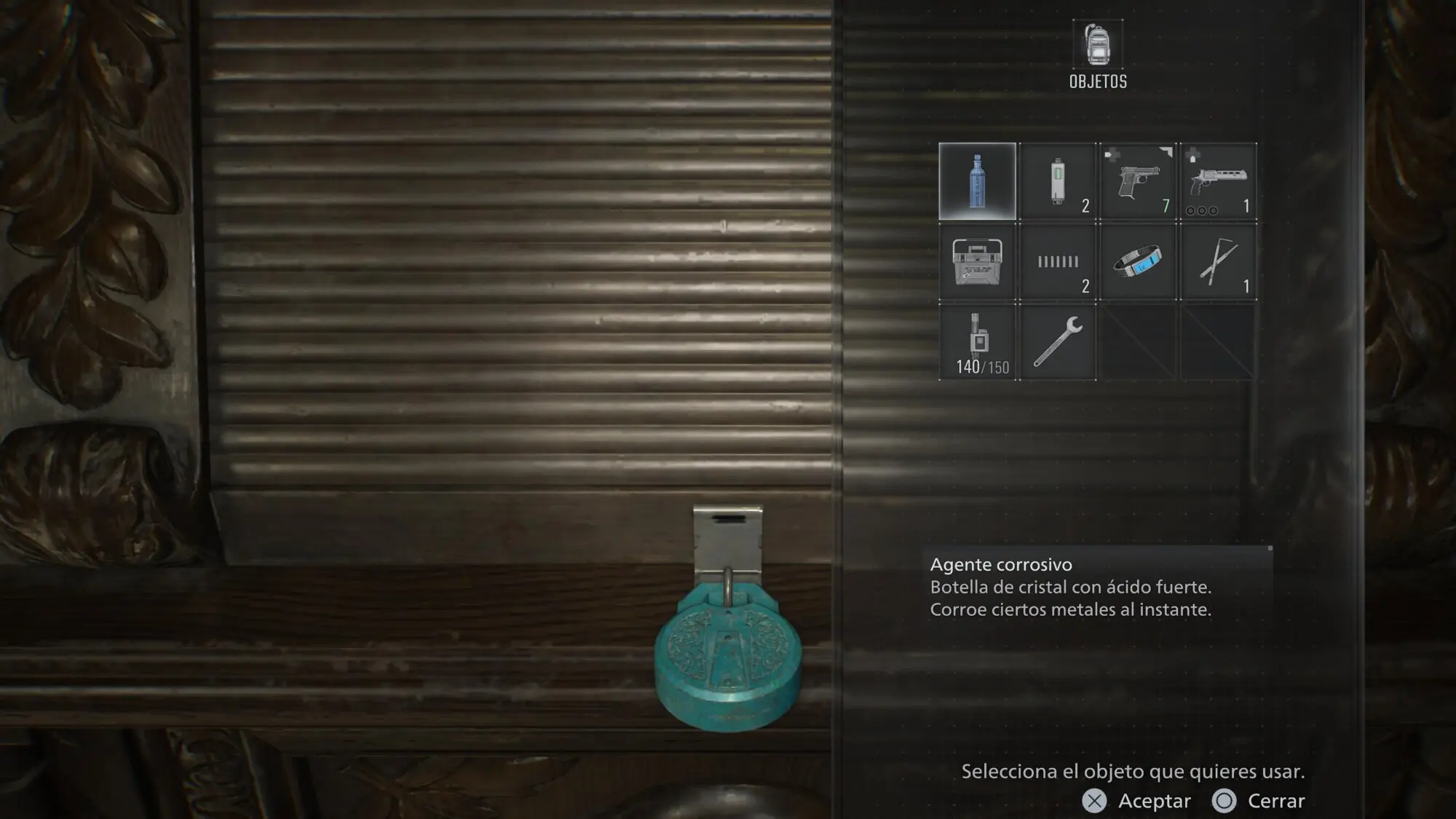 | Ganzúa | Pasillo de las Unidades hospitalarias | Abre cerraduras simples — un solo uso por ganzúa |