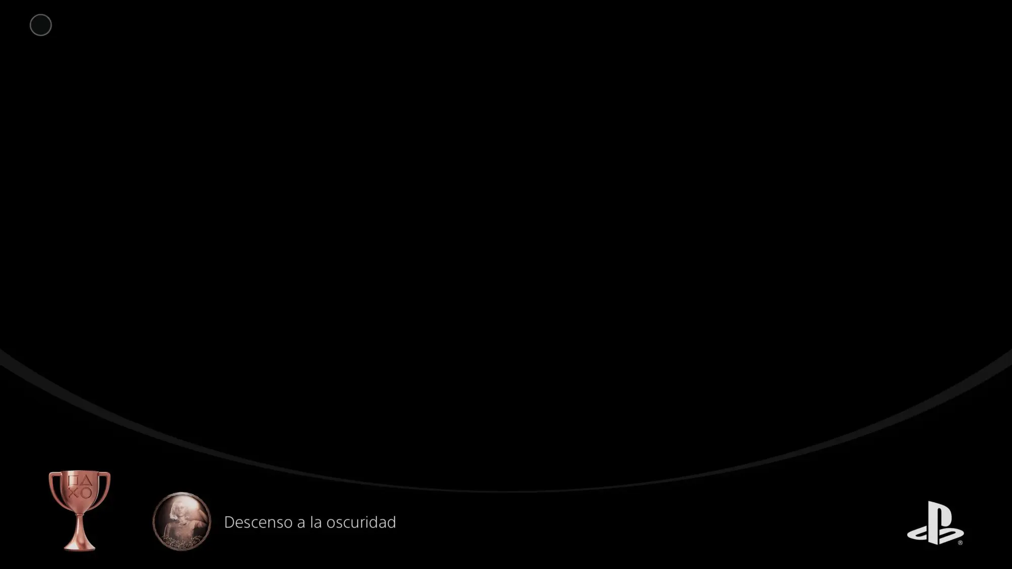 Tras lo sucedido conseguimos el trofeo "Descenso a la oscuridad" — icono con una figura en postura encorvada o cayendo sobre fondo oscuro, sobre pantalla completamente negra. Es un trofeo de progreso narrativo, no de combate — se activa al entrar o completar la Unidad de aislamiento. El título del trofeo describe exactamente lo que acaba de pasar: Grace ha bajado al nivel más oscuro del Centro de pacientes, ha encontrado a Emily y ha empezado a subir.
