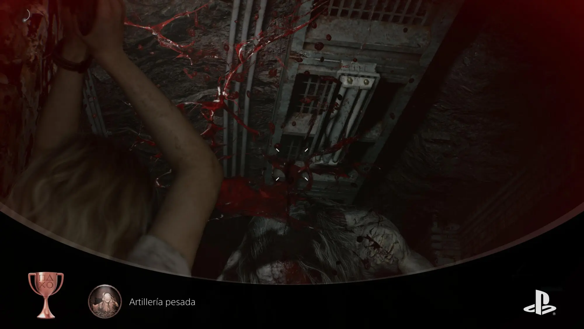 Durante el recorrido por los pasillos de las celdas, en uno de los combates contra los infectados más resistentes de esta zona, se desbloquea el trofeo de bronce "Artillería pesada" al usar el Requiem de Leon. La pantalla se tiñe de rojo en el momento en que el infectado cae. No requiere nada especial, se obtiene avanzando de forma natural.