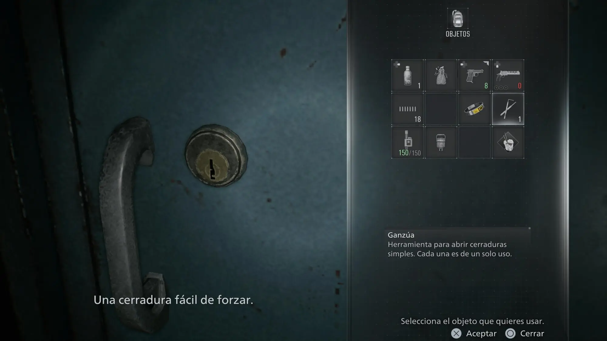 | Ganzúa | Puerta metálica con cerradura simple, zona del tercer enchufe | De un solo uso. No la gastes antes si puedes evitarlo |