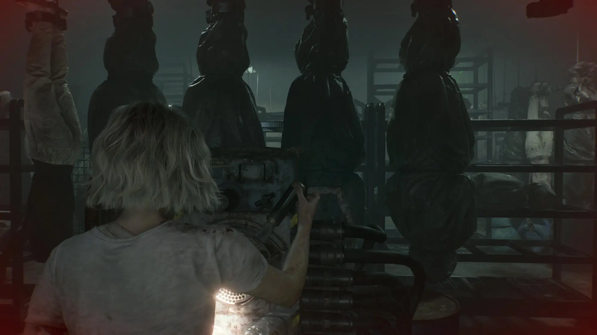 | Tanque de procesamiento drenado | Cuerpos colgados en plástico negro. Tercer distribuidor eléctrico al fondo | Zona con infectados. Avanza con cuidado entre los cuerpos, limitan la visibilidad |