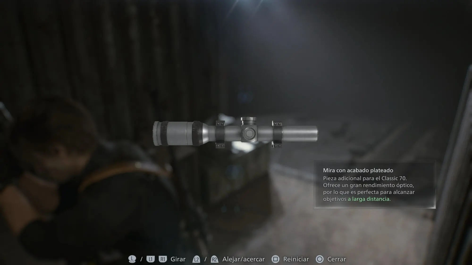 Al salir de la R.P.D. si exploramos un poco podemos llegar al mítico Garage de la Comisaria que tantos recuerdos les dará a los fans de la saga, Leon encuentra una pieza de equipamiento valiosa: la Mira con acabado plateado. Es una mira telescópica de cuerpo metálico plateado con diales de ajuste y soportes de montaje. La descripción confirma: "Pieza adicional para el Classic 70. Ofrece un gran rendimiento óptico, por lo que es perfecta para alcanzar objetivos a larga distancia."