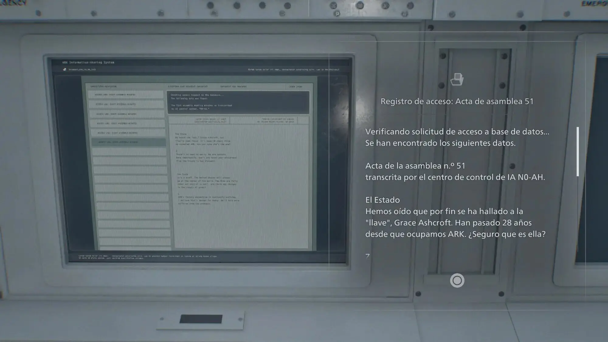 Los registros confiscados del Acta de la primera asamblea de ARK — el mismo tipo de documento que Grace encontró durante el juego — revelan la verdad: