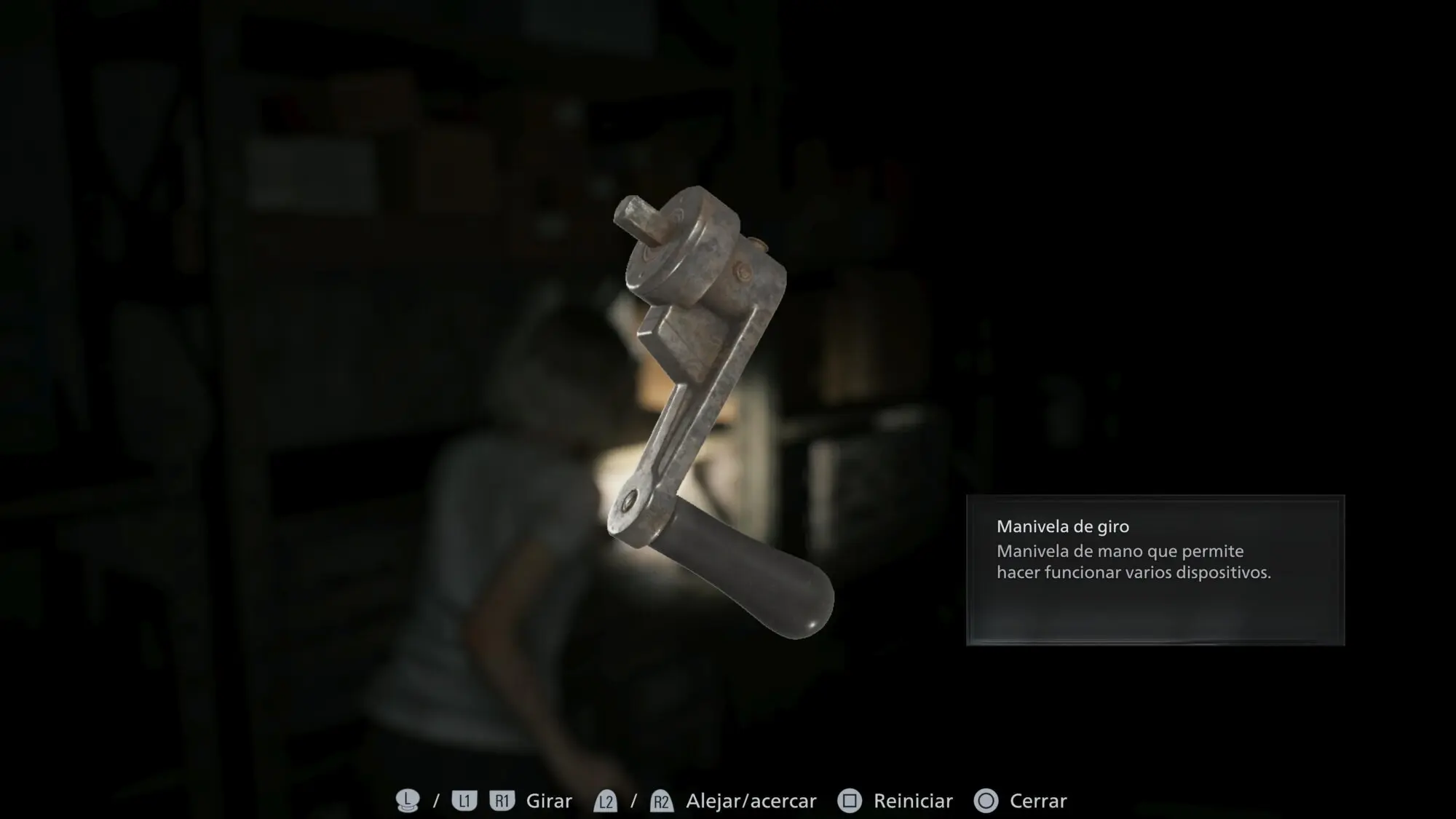 Durante el recorrido por la zona inferior Grace encuentra la Manivela de giro, una herramienta metálica con mango negro descrita como "Manivela de mano que permite hacer funcionar varios dispositivos." Es necesaria para accionar mecanismos en las unidades de distribución.