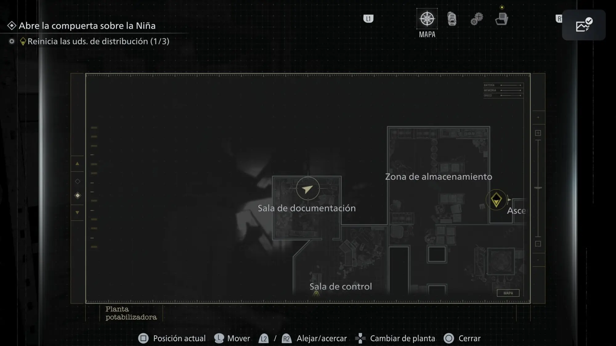 | Unidad de distribución 3/3 | Sala de documentación / Sala de control | La más alejada. Planifica la ruta en el mapa antes de correr |